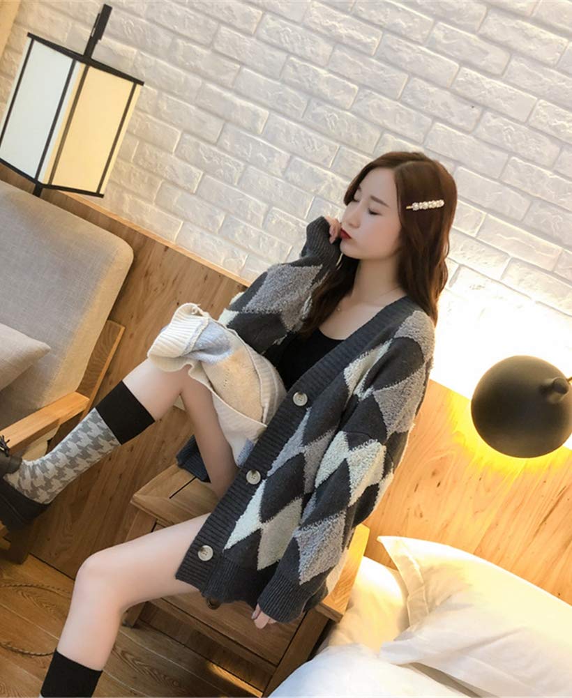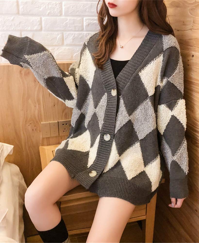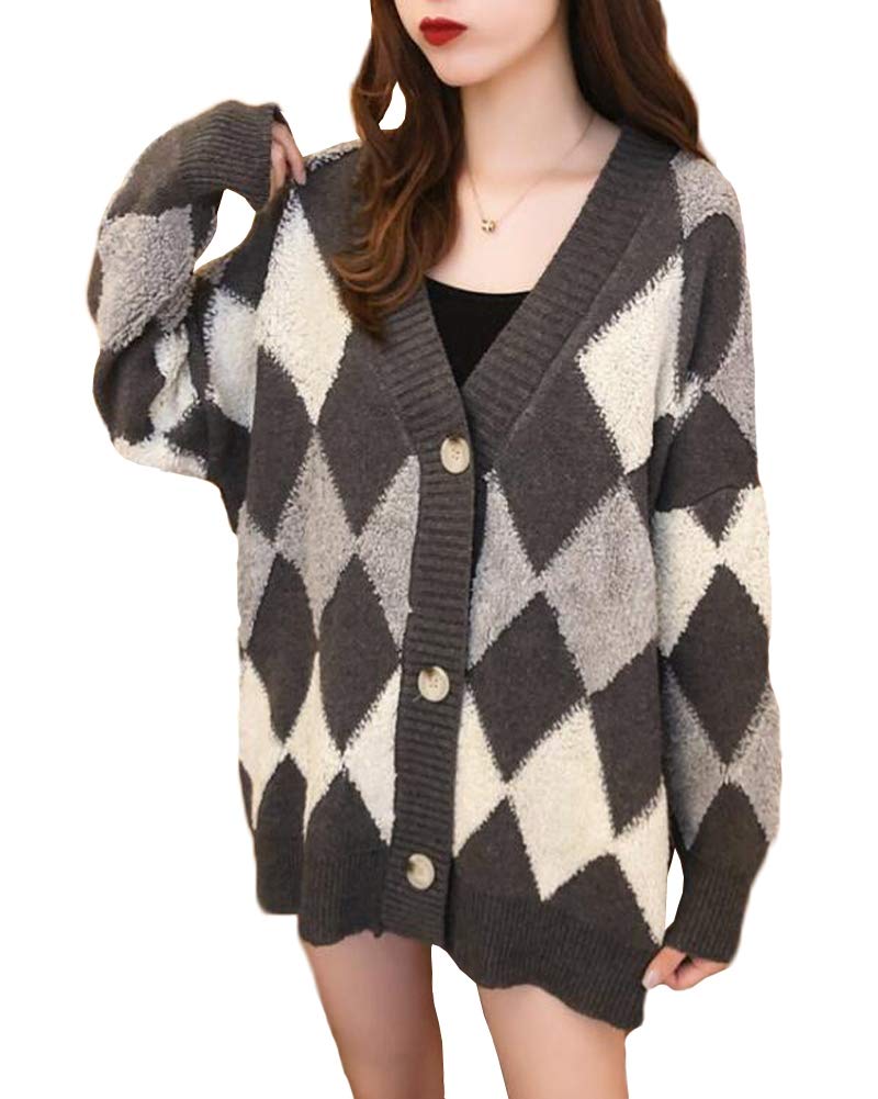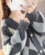 ASARANS カーディガン レディース ニット アウター 羽織り ボア トップス アーガイル Vネック 秋冬 フリーサイズ