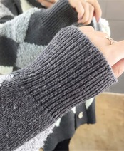 【アーガイル柄デザイン】もこもこのアーガイル柄デザインが可愛らしくポップなイメージを与えてくれます。ゆったりフォルムシルエットも体型カバー。