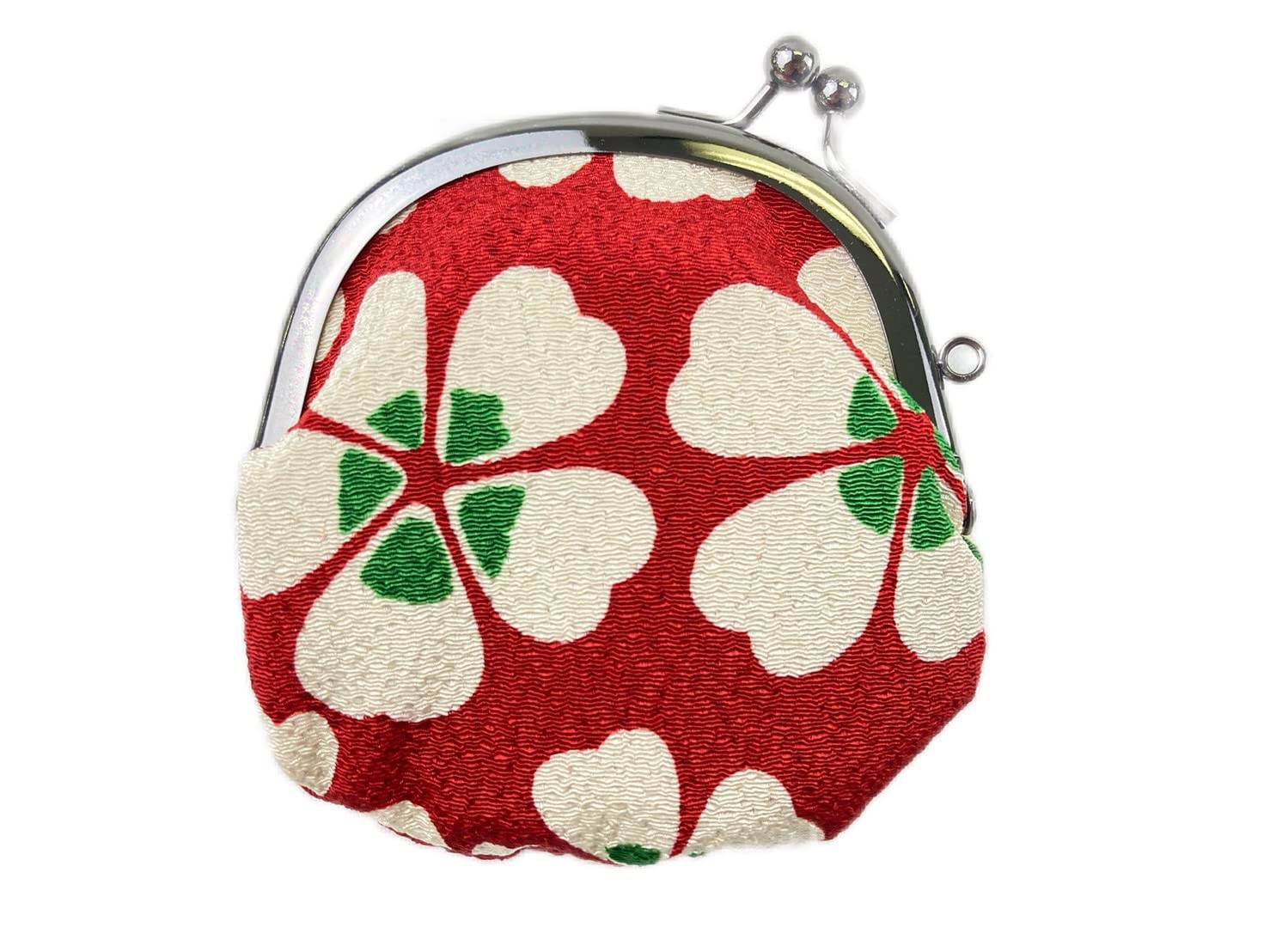 日本製生地メーカー・小紋工房の高級生地「二越ちりめん」を使用したがま口財布。がま口のひねりが斜めについていてオシャレなデザイン。小さいため奥まで目が通き、お金を取り出しやすく使いやすいミニ財布です。