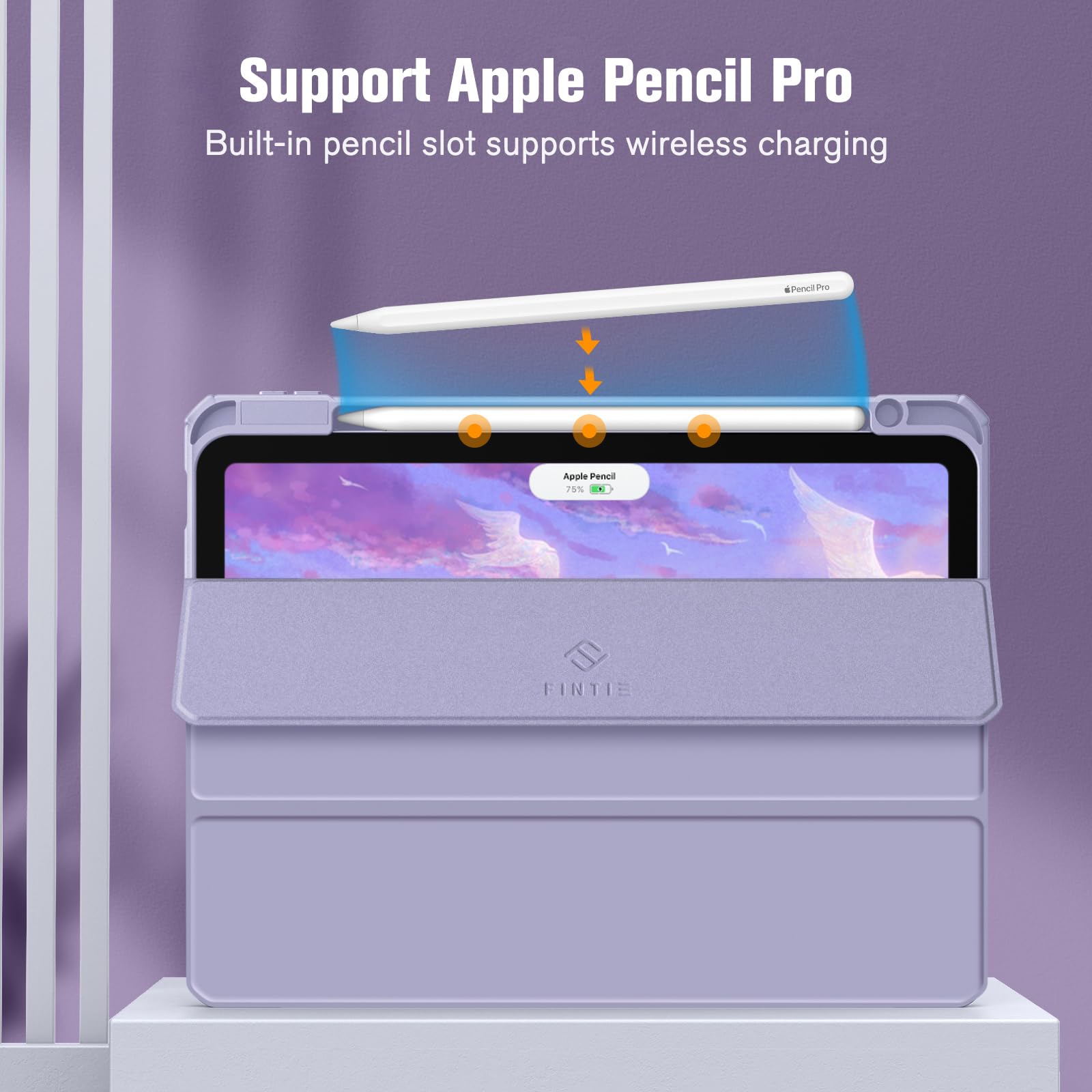 Fintie iPad Air 11インチ ケース M3 (2025 第7世代) / M2 (2024 第6世代) / Air 5/4 ケース 2022/2020 10.9 インチ 透明バックカバー Apple Pencil 収納可能 ワイヤレス充電対応 三つ折スタンド スリープ機能 軽量 薄型 傷つけ防止 PU合成レザー TPU(ライラックパープル)