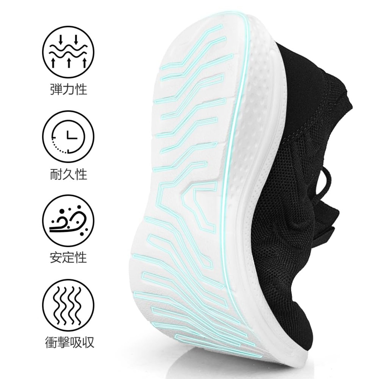 【通気性】一体織りメッシュは、軽量、通気、速乾など機能が優れて、熱がこもるのを防ぎ、さわやかな履き心地を提供してくれます。一日履いても蒸れにくいです。着用時の季節を選びません。