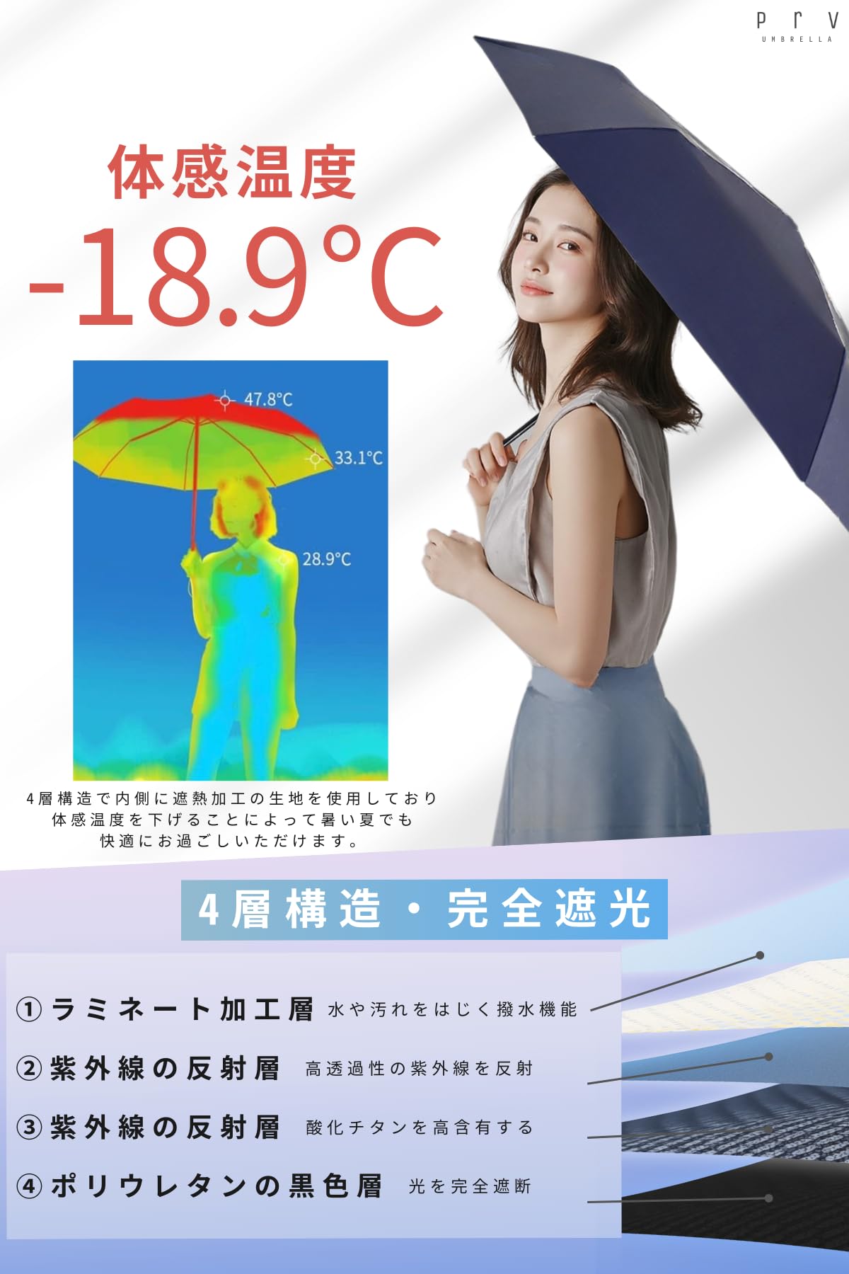 【新着商品】Prv【 雑誌掲載! カバンが濡れない大きさ/体感温度-18.9℃ 折りたたみ傘 】晴雨兼用 雨傘 日傘 大きい 116cm 超撥水加工 自動開閉 ワンタッチ 風に強い グラスファイバー 10本骨 uvカット99% UPF50+ 遮光 遮熱 断熱 折り畳み傘 レディース メンズ 収納袋付