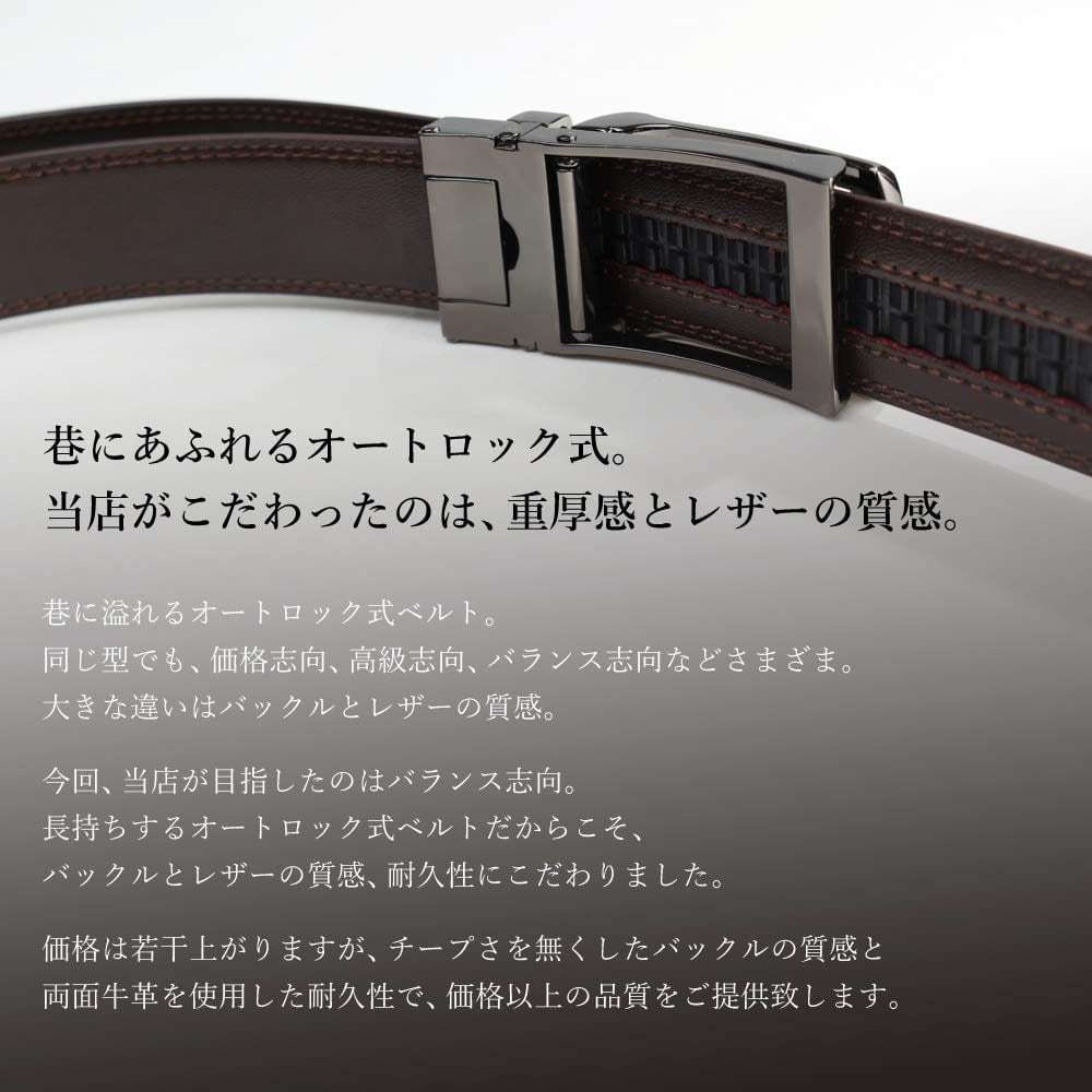 [アトリエサンロクゴ] ビジネスベルト 穴なし オートロック式ベルト ベルト メンズ 本革 牛革 レザーベルト ウエスト調整 ワンタッチ スライドベルト
