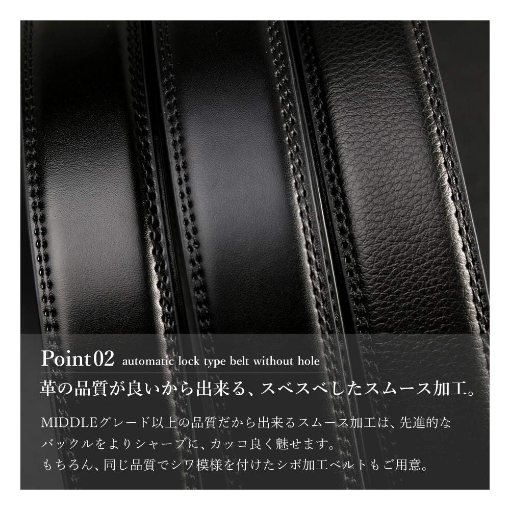 【在庫処分】[アトリエサンロクゴ] ビジネスベルト 穴なし オートロック式ベルト ベルト メンズ 本革 牛革 レザーベルト ウエスト調整 ワンタッチ スライドベルト
