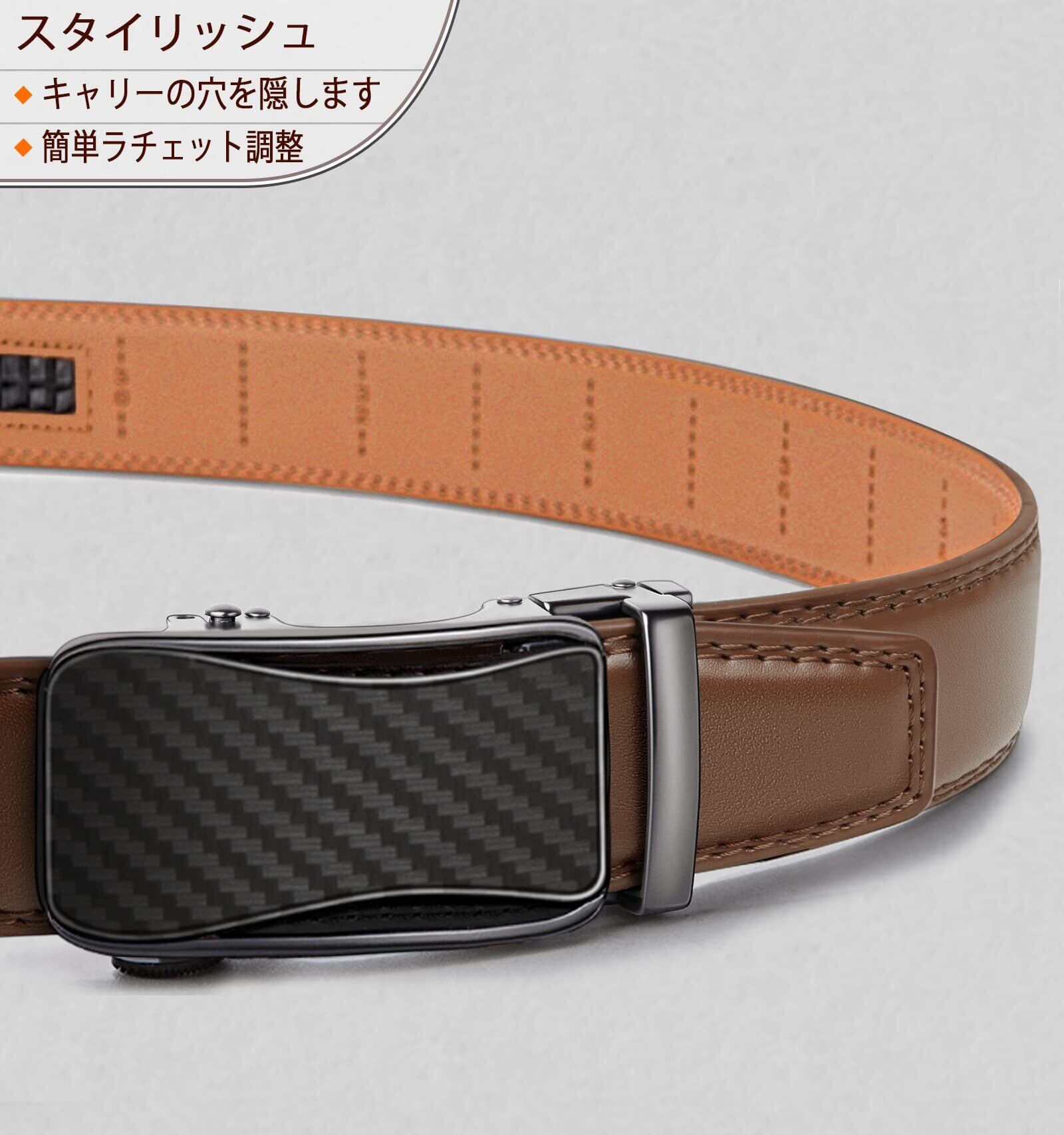 [KEMISANT] ベルト メンズ ベルトスーツビジネス大きいサイズ紳士用穴なし35mm無段階調節オートロック式プレゼント用箱付