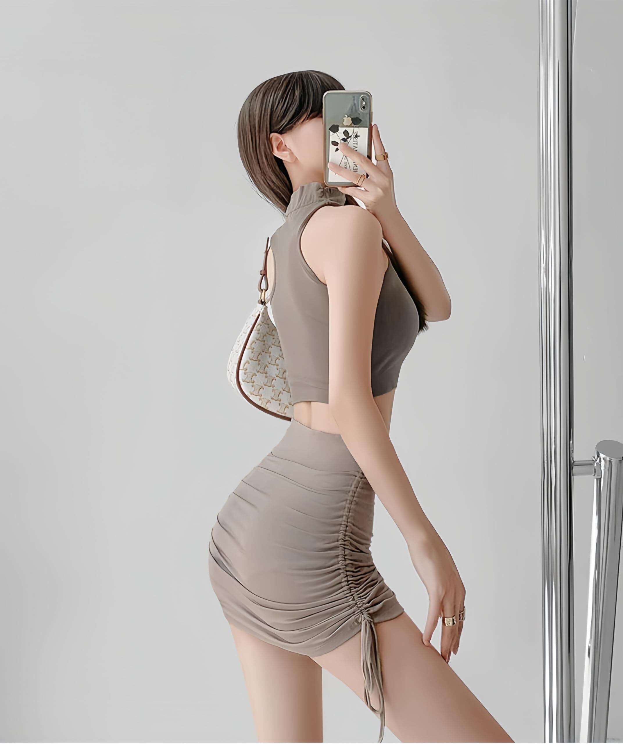 脚まわりを絶妙なバランスで大人っぽくセクシーに彩る、フェミニンでお洒落なミニ丈スカートです。両裾のドローコードで丈の長さを調節可能。お好みに合わせて脚まわりの魅せ方を演出できます。