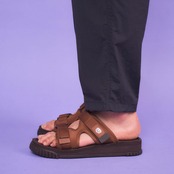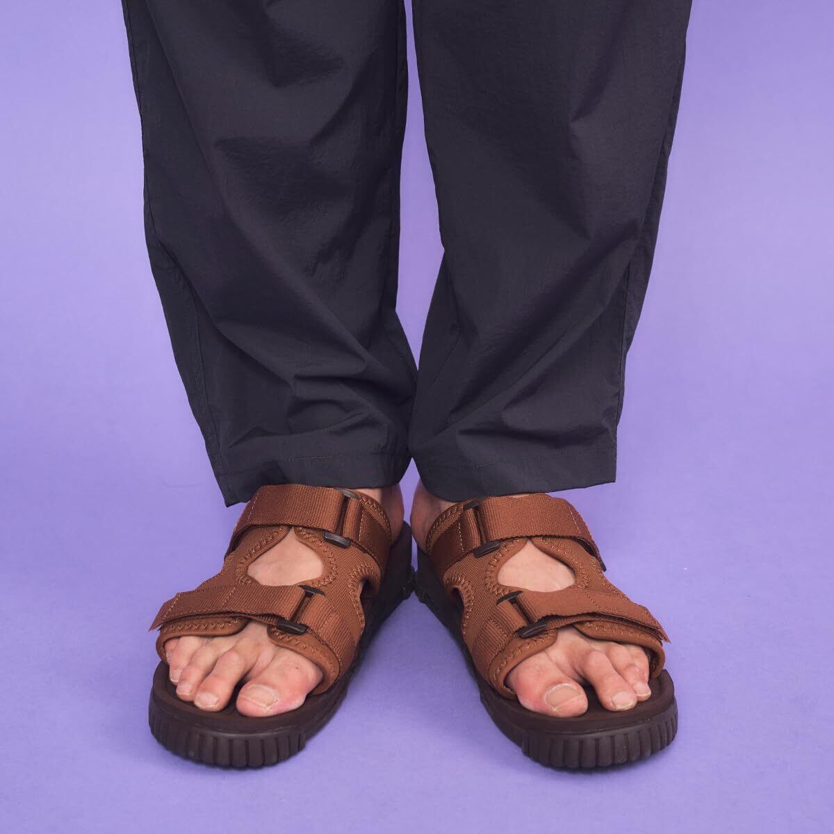 甲についた9本のストラップで、足に合わせてしっかりフィットしてくれるので、かかとストラップの無いスライドサンダルタイプながらとても歩きやすい仕様になっています。また、ストラップのテープには、サステナブルな再生素材を使用し、強度と足当たりの良さを両立するベストなバランスを探り、コットンライクな風合いでナチュラルなルックスのスポサンに仕上げました。