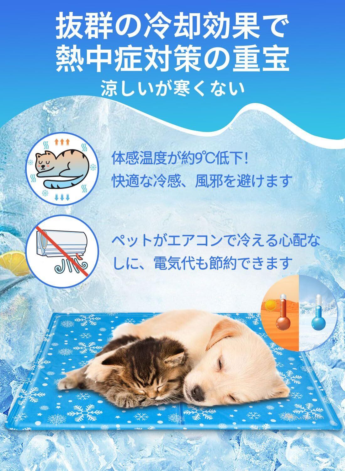 ❄️ 【優れた冷却効果】マット内のジェルがペットの体温を吸収・放散し、冷感を長時間維持します。ペットの体感温度を約9℃下げ、適度な冷たさを保ちながらペットの健康を守ります。猛暑の中でもペットの熱中症対策に役立ちます。全身を毛で覆われたペットにとって、ひんやりマットは夏の必需品です。