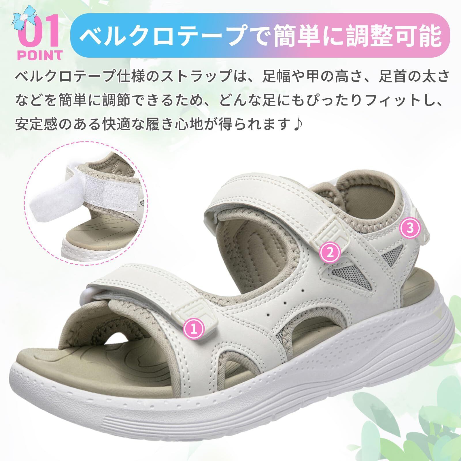 【履きやすい厚底サンダル】接地面から、つま先で約3cm、かかとで約5cmの高さのソールです。約2cm程の高低差の傾斜で負担なく履けるサンダルです。適度な体格比率をアップし、美脚効果を実現、自信を増強します。それぞれの一歩は全て気楽であり思いのままにすることができます。