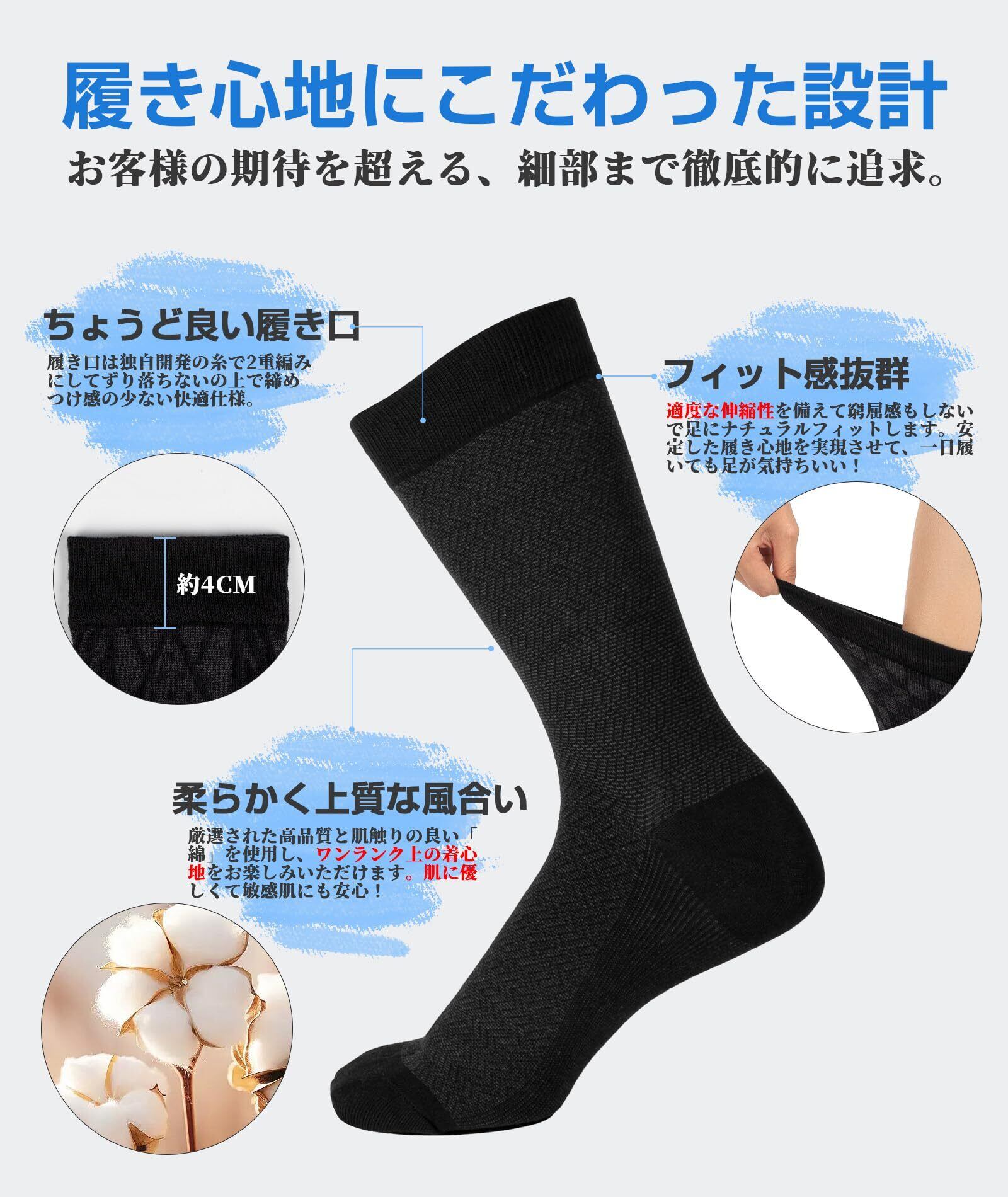 【履き心地にこだわった設計】:適度な伸縮性を備えて窮屈感もしないで足にナチュラルフィットします。履き口は独自開発の糸で2重編みにしてずり落ちないの上で締めつけ感の少ないです。安定した履き心地を実現させて、一日履いても足が気持ちいい!また、厳選された高品質「天然綿」を使用し、ワンランク上の着心地をお楽しみいただけます。