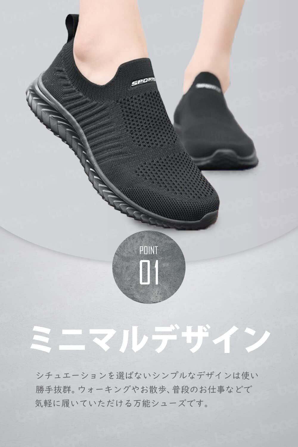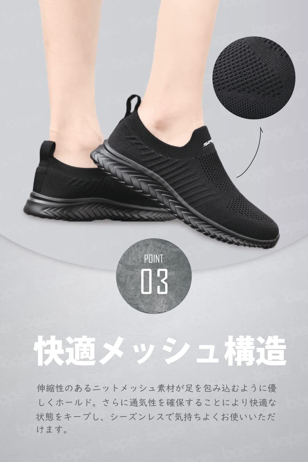 【快適メッシュ構造】通気性を確保することでより快適な状態をキープするスリッポンならウォーキングシューズやカジュアルシューズとしても履ける万能シューズです