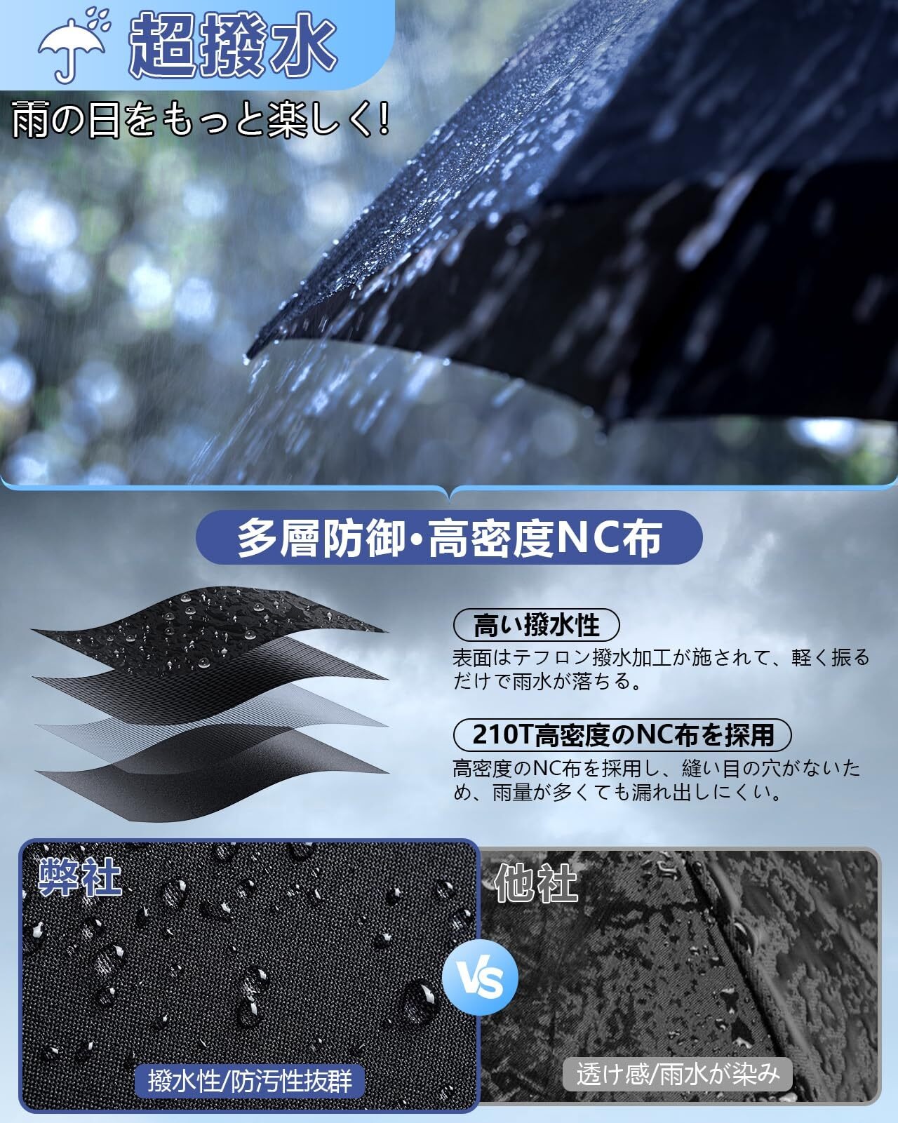 【10本骨強化型&強風耐久性】新作晴雨兼用傘が遂に登場しました!これは男性の要望に応えた究極のメンズ傘です。柔軟性と強度を兼ね備えた10本骨を採用し、通常の8本骨を持つ傘と比較して、風に対する耐性と耐久性が向上しています。さらに、錆びにくい防食加工が施された傘のフレームは非常に頑丈で、強風や激しい雨にも耐えることができ、折れたり曲がったりしにくい設計です。