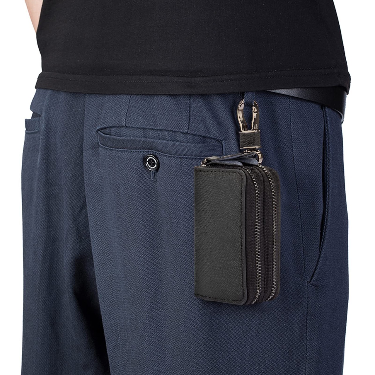 【新着商品】キーケース メンズ レディース スマートキーケース 2つ 鍵が同時収納 キーケース ダブルポケット 革 多機能 便利 (ブラック)