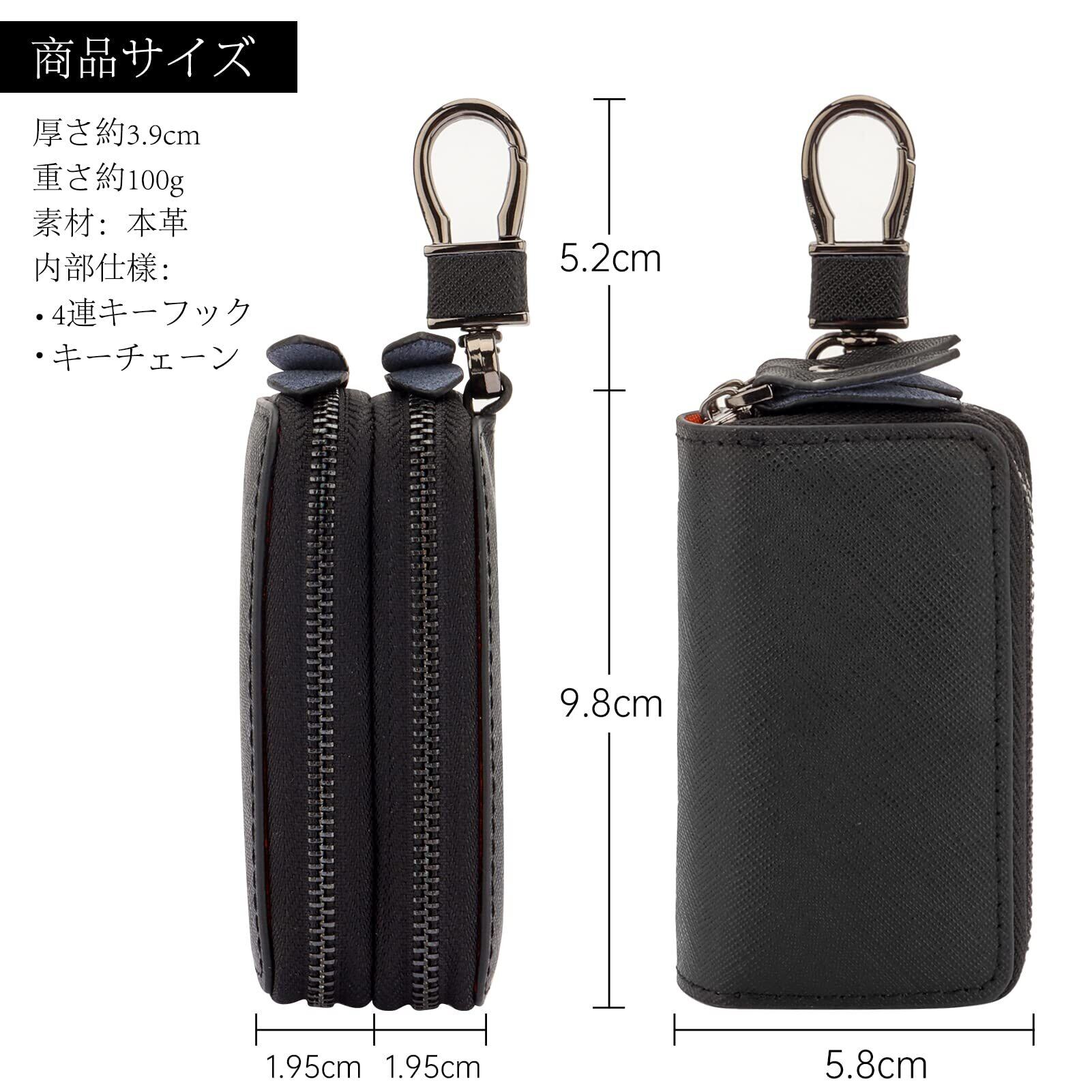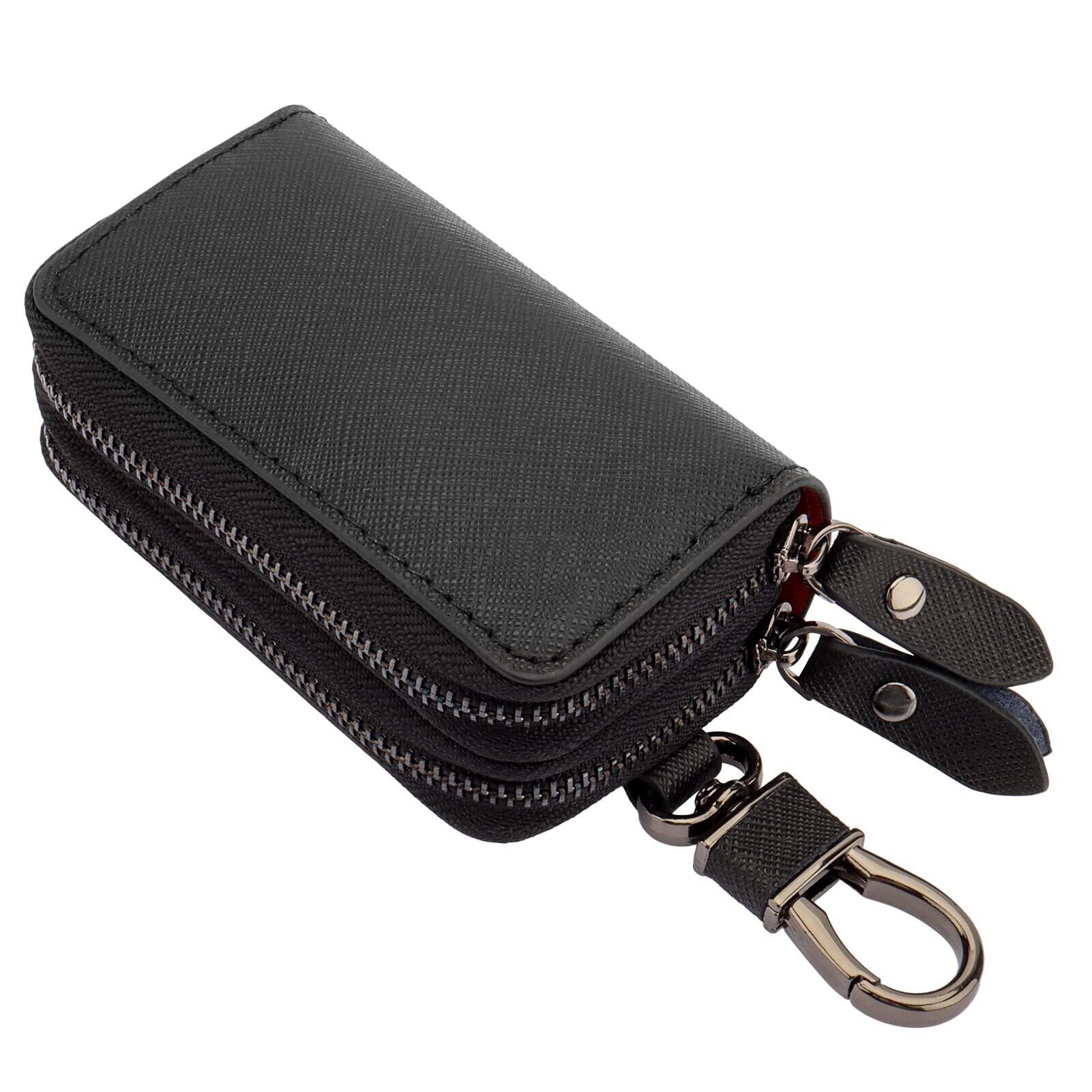 キーケース メンズ レディース スマートキーケース 2つ 鍵が同時収納 キーケース ダブルポケット 革 多機能 便利 (ブラック)