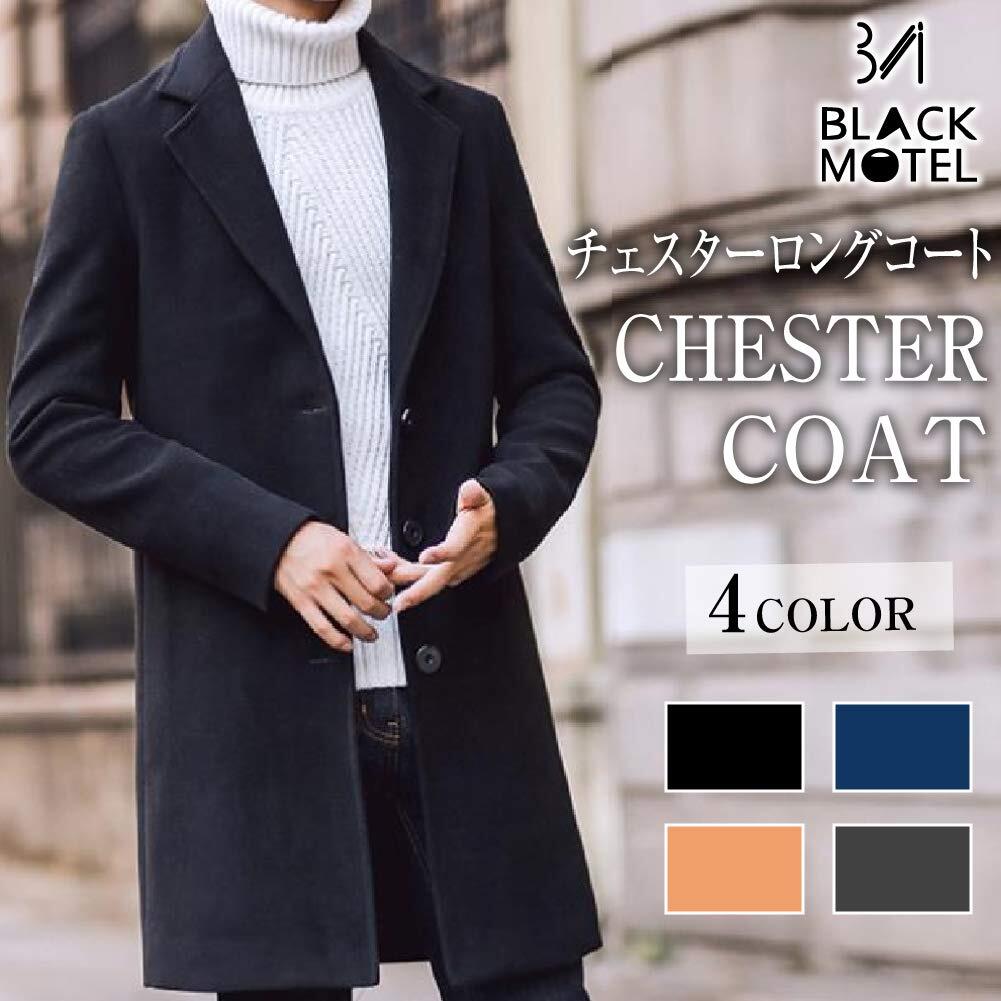 [BLACK MOTEL] コート メンズ チェスターコート ロング ジャケット 秋 冬 春 ウール 薄手 アウター ビジネス 紳士服