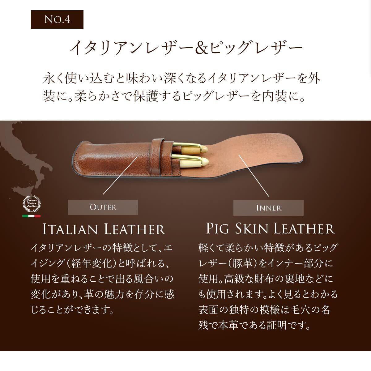 [推奨ペンサイズ] 長さ: 11cm ~ 15cm 太さ: 0.9cm ~ 1.3cm [1本差しサイズ] 縦 150mm × 横 27mm × 厚 24mm 重さ 17g [2本差しサイズ] 縦 150mm × 横 50mm × 厚 24mm 重さ 31g [3本差しサイズ] 縦 150mm × 横 71mm × 厚 24mm 重さ 48g [素材] 本牛革 イタリアンレザー