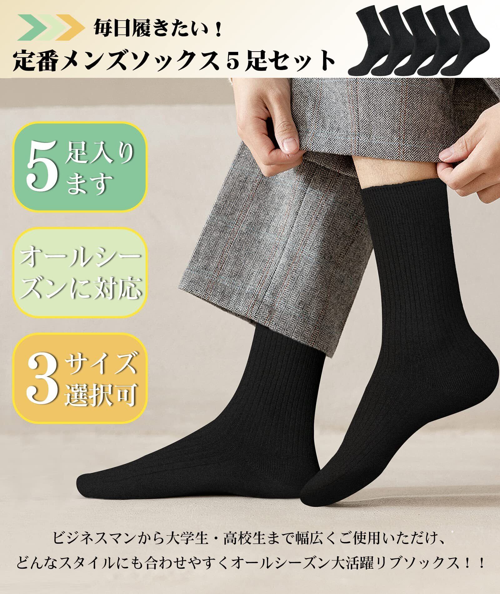 【新着商品】[HASOME] 靴下 メンズ ビジネス ソックス 5足セット 綿 蒸れない 抗菌 消臭 双糸 リブ編み 紳士 学生 用 くつ下 クルーソックス 通勤 通学 無地 オールシーズン対応 M/L/XLサイズ選択可