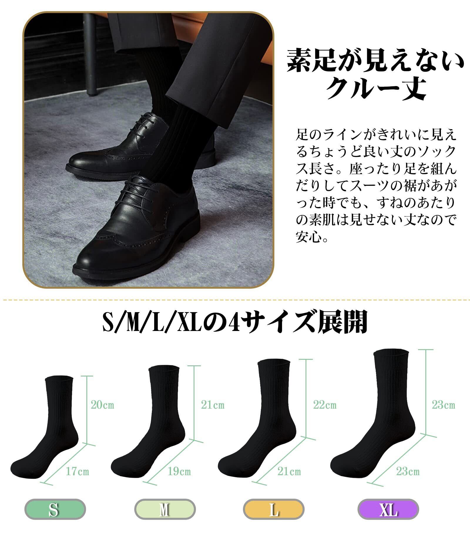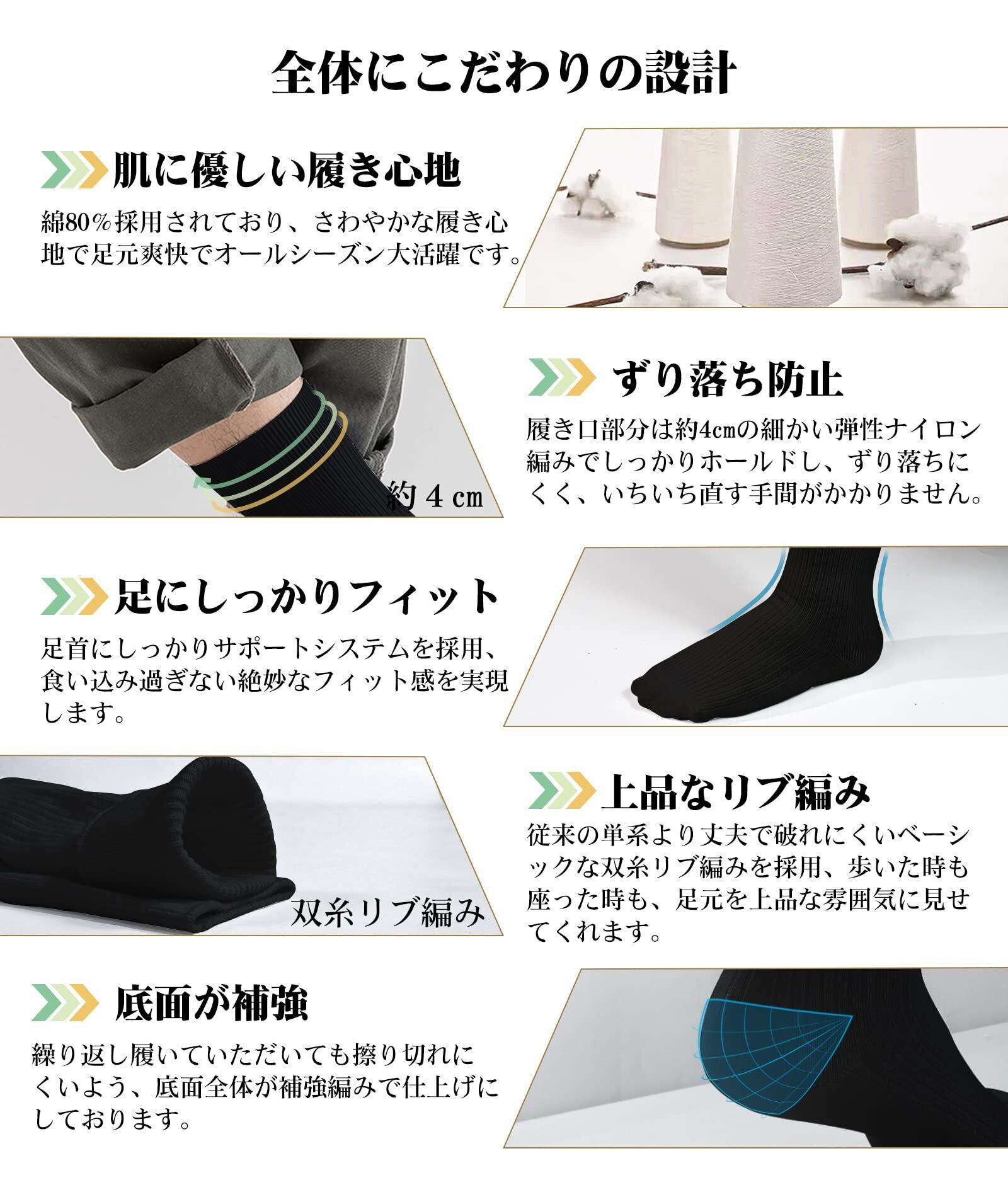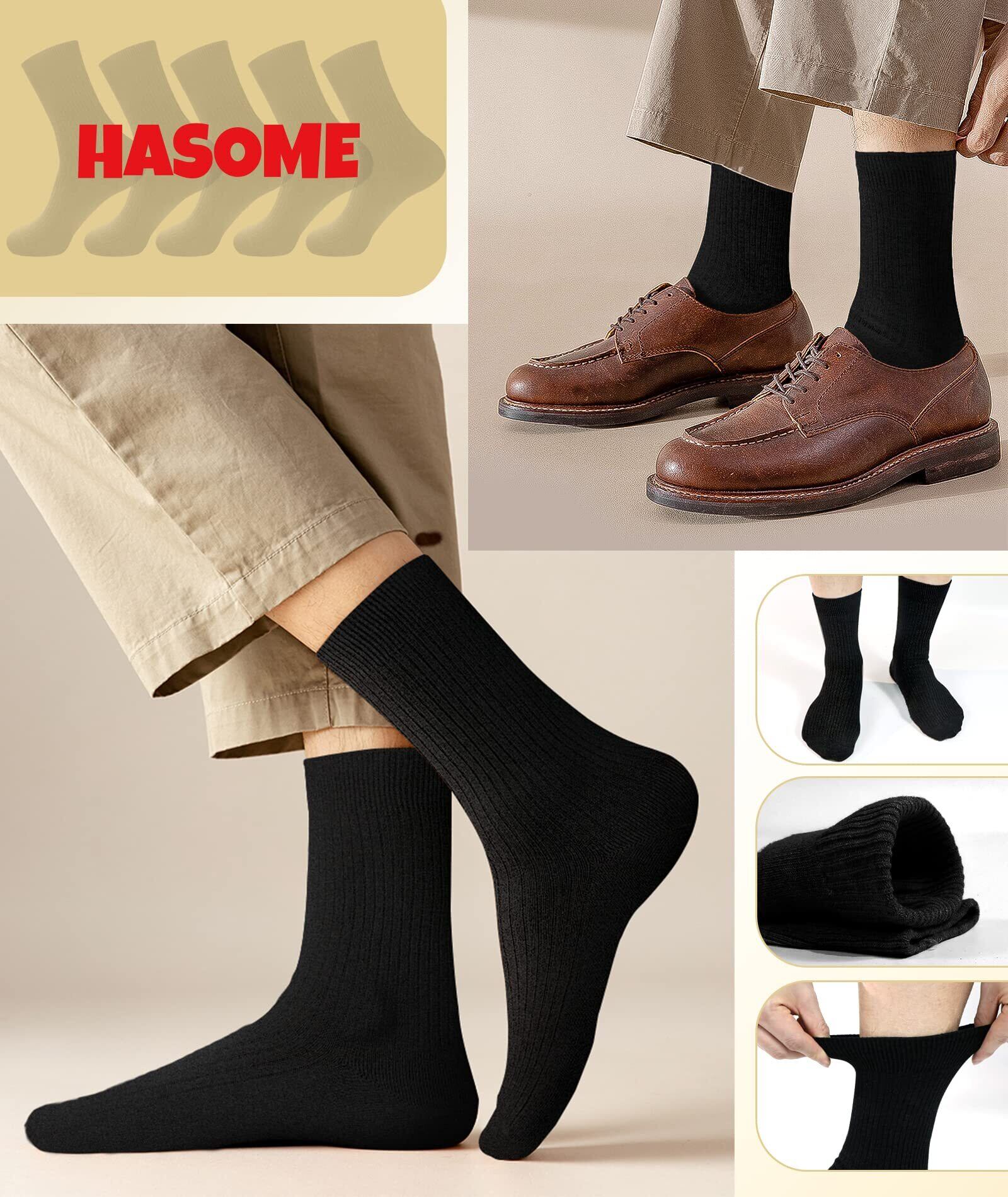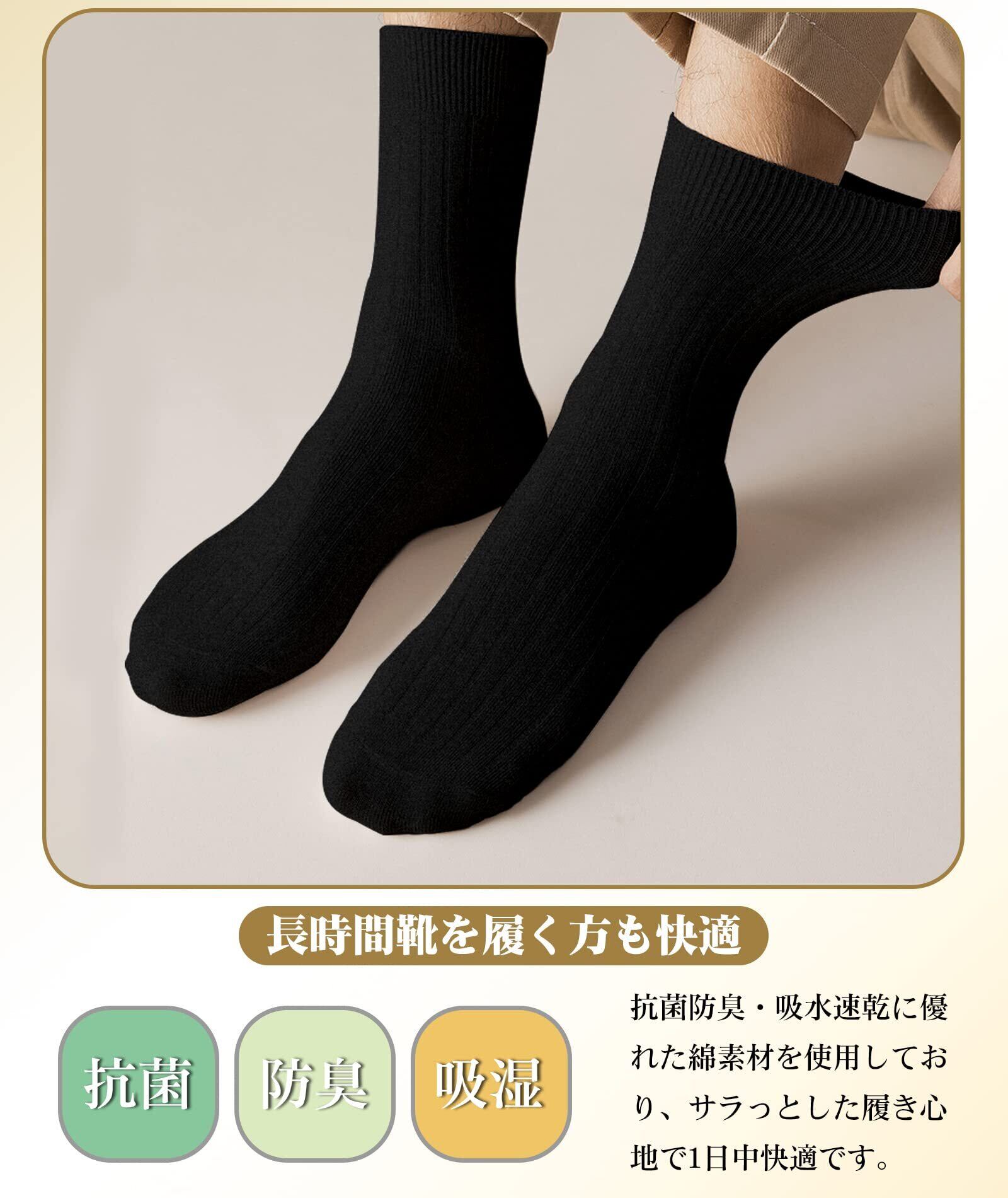 [HASOME] 靴下 メンズ ビジネス ソックス 5足セット 綿 蒸れない 抗菌 消臭 双糸 リブ編み 紳士 学生 用 くつ下 クルーソックス 通勤 通学 無地 オールシーズン対応 M/L/XLサイズ選択可