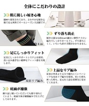 「抜群のフィット感」:裏糸にコットンと伸縮性が高いスパンデックスを混紡したこだわりの糸を採用、食い込み過ぎない絶妙なフィット感を実現します。履き口部分は、約3.5cmの細かいリブで食い込まずしっかりホールドします。