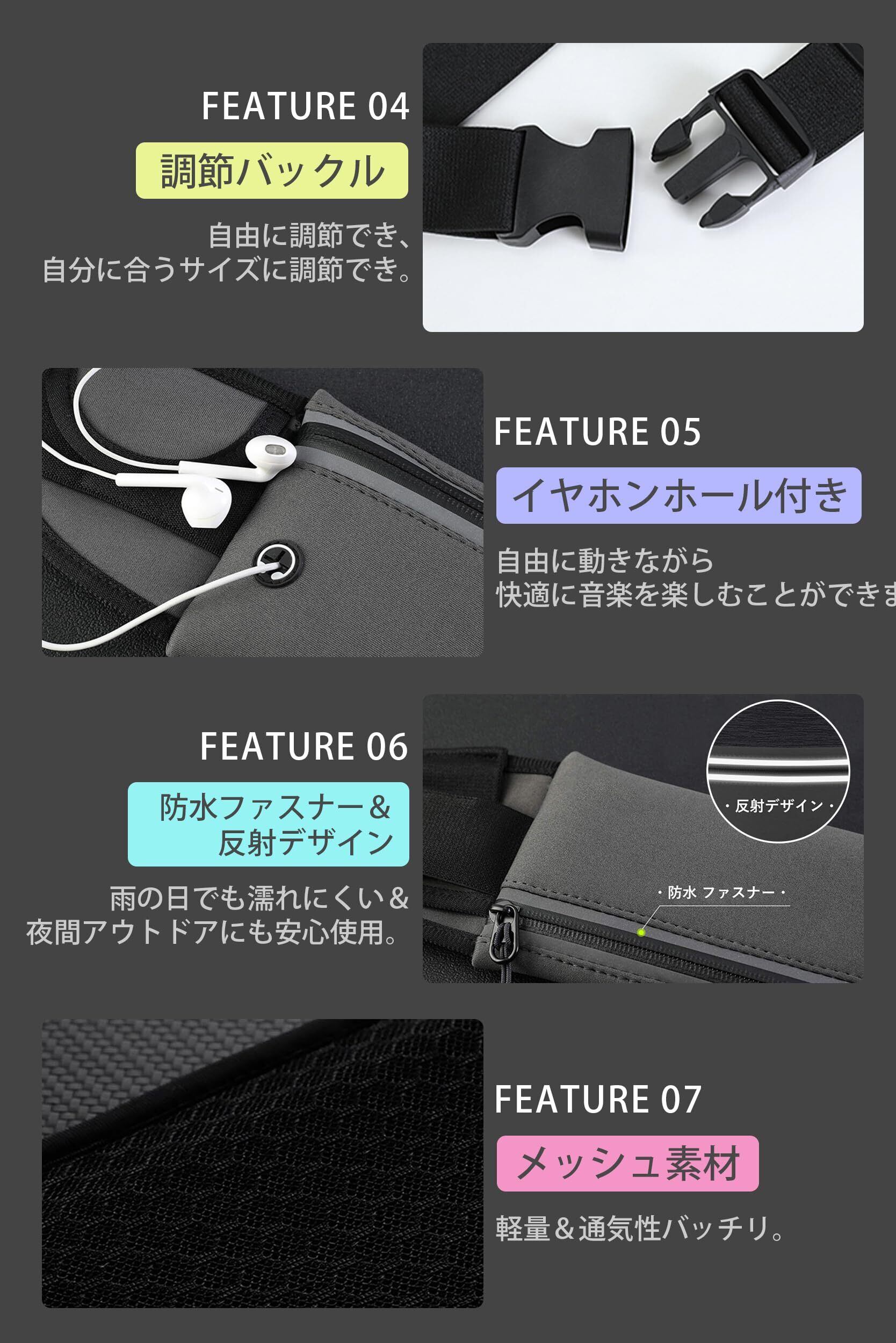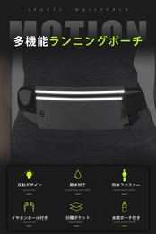 【おススメ・ポイント】 ①防水性の高い素材を利用してるため、汗をかく真夏や、急な雨でも荷物を守れます。②反射デザインがついているため、夜間のランニングポーチでも安心です。③シンプルでかっこいいデザインなので、どんな服にも合わせやすく、サイクリング、ウォーキング、登山、フェスなどにも使えます。