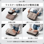 【簡単ファスナー圧縮】ファスナーで閉めるだけで大きさを約1/2に圧縮。 スーツケースの中身がスッキリ・コンパクトに収納できます。