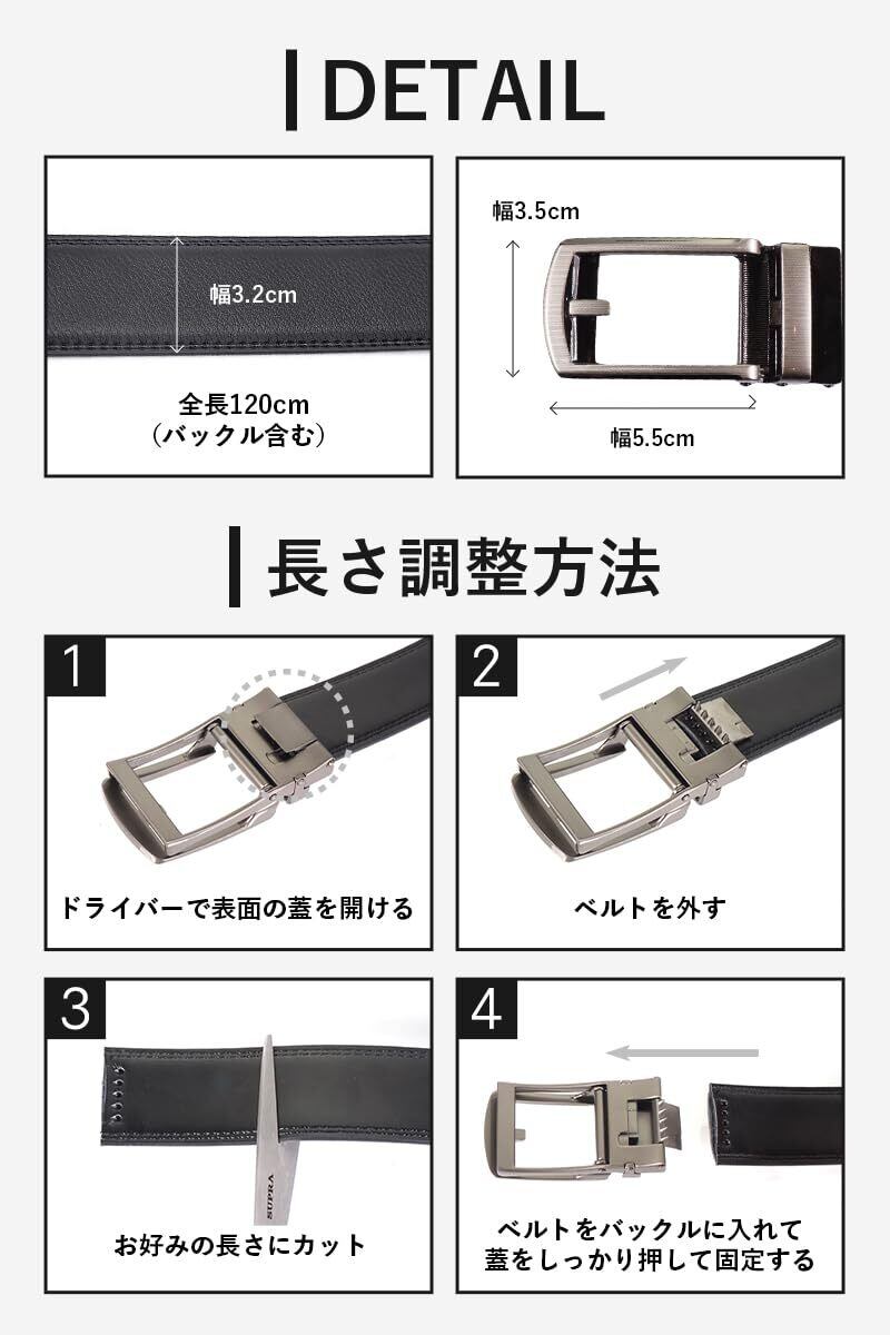 [JINSELF] ベルト 本革 メンズ オートロック バックル 無段階 穴なし スーツ ビジネス カジュアル コンフォート クリック ロング 120㎝ AL