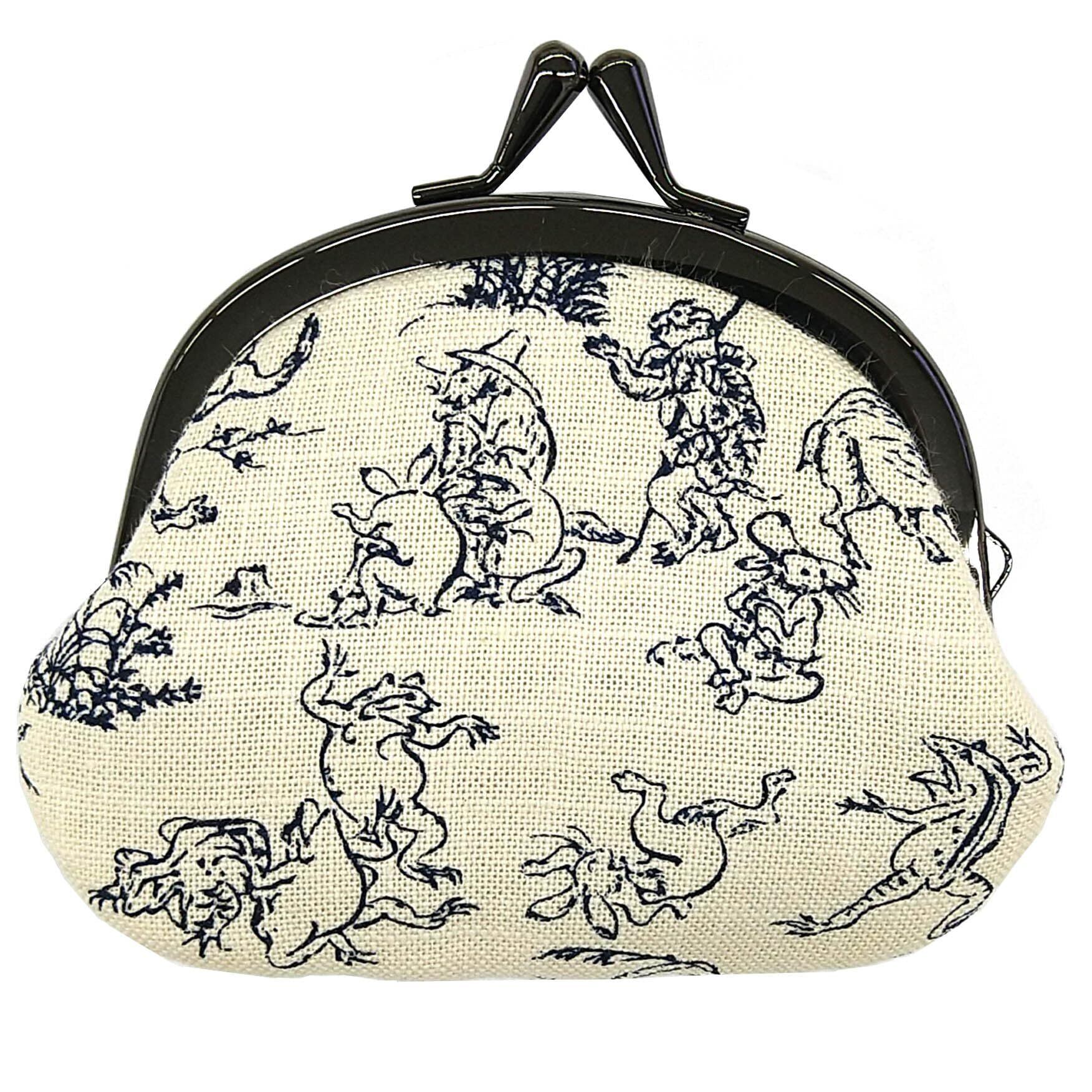 丸全 日本製 がま口 財布 3.3寸 鳥獣戯画 白 12×10.5×3cm