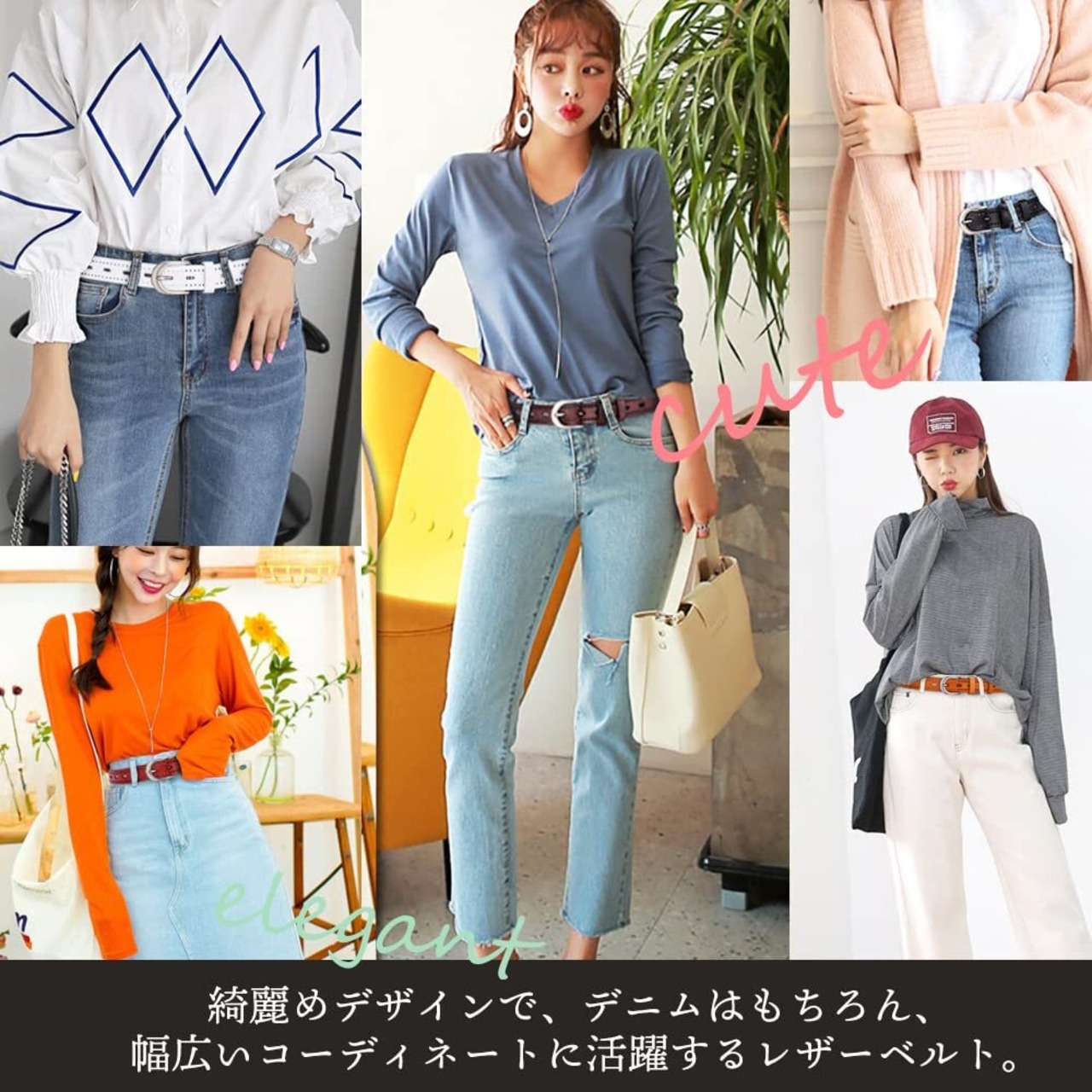 [AOBAX48] 本革 ベルト レディース レザーベルト フリーサイズ 革 レザー ダークブラウン キャメル ブラック レッド ホワイト サイズ調整 できる