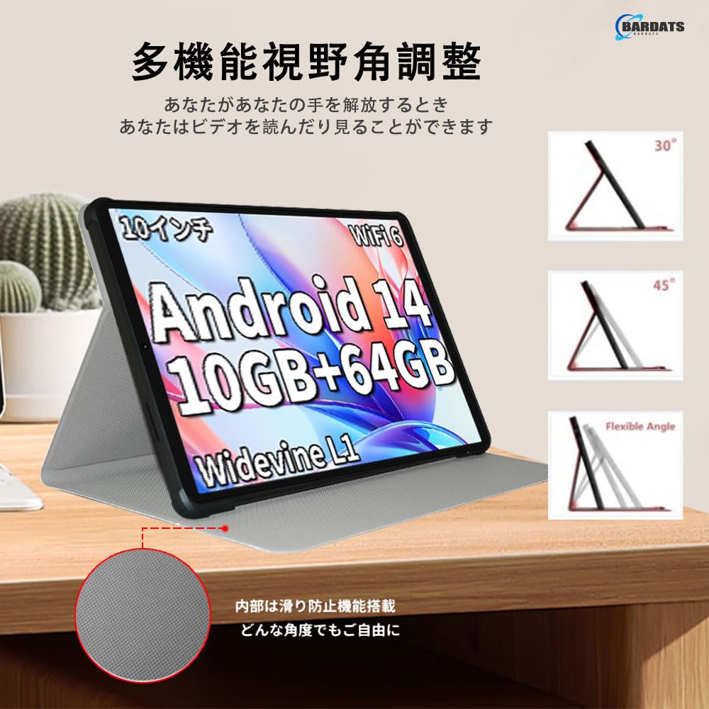 [BARDATS] For TECLAST P30T タブレット ケース (Android 14 タブレット 世界初登場) 10 インチ 保護ケース スタンド 機能 角度調整 上質PUレザー 軽量 薄型 耐衝撃 擦り傷防止 全面保護 スマート カバー(ブラック )