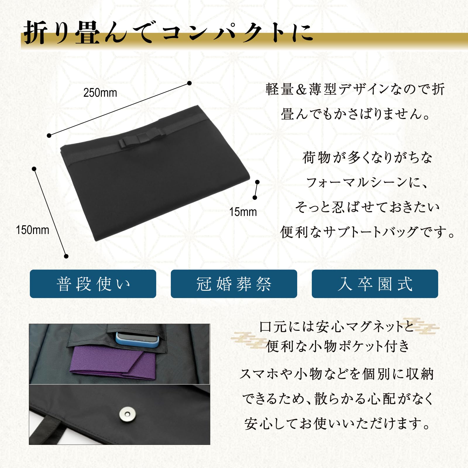 [スタイルふくさ] サブバッグ フォーマル(京都 日本製) A4 レディース 入学式 卒業式 折りたたみ sfnb03A