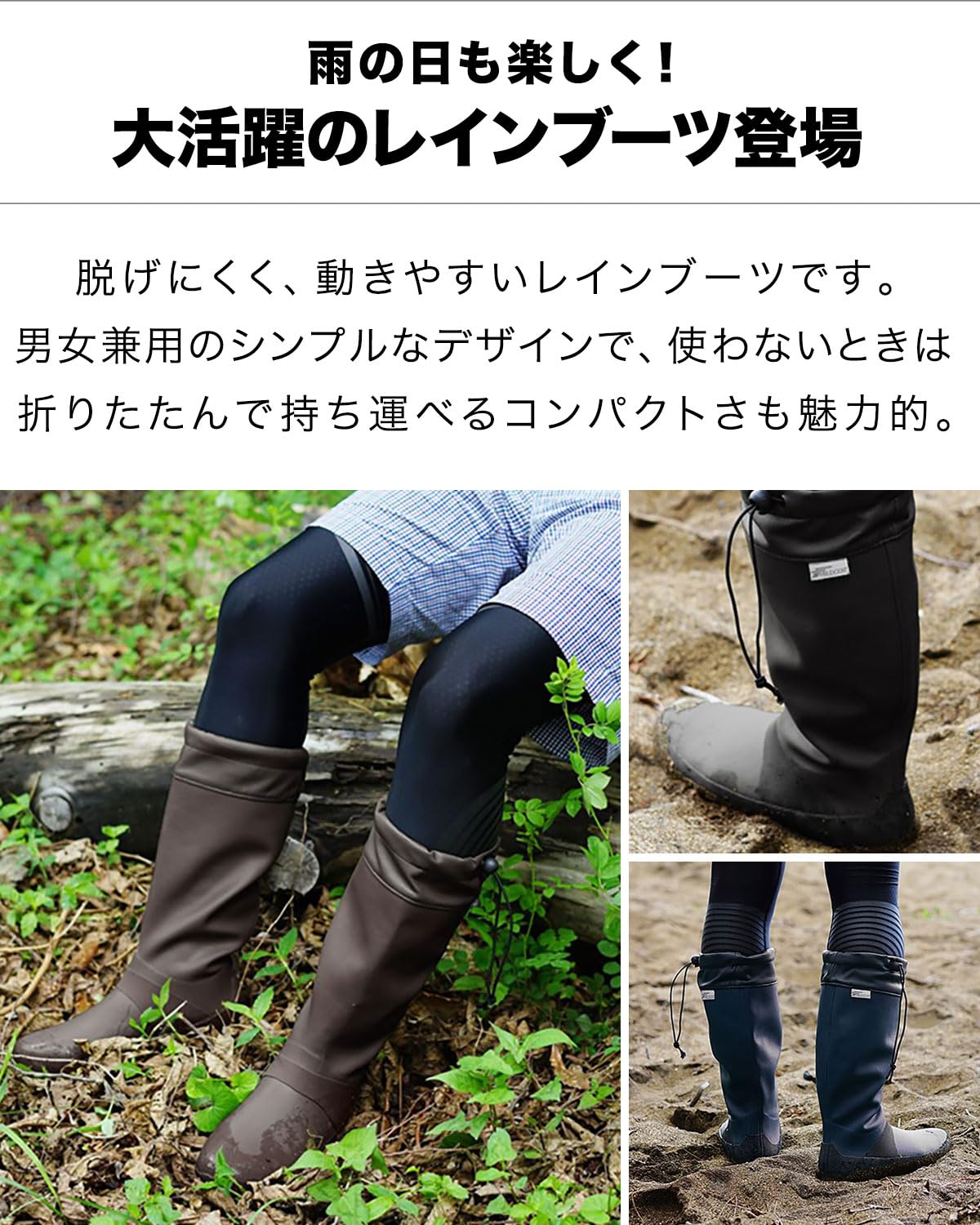 [フィールドア] レインブーツ 【全5カラー / 23cm~28cm 対応 / 19cm~21cm キッズ対応】 収納袋付 男女兼用 メンズ レディース キッズ レインシューズ 長靴 アウトドア ドローコード コンパクト収納 子供