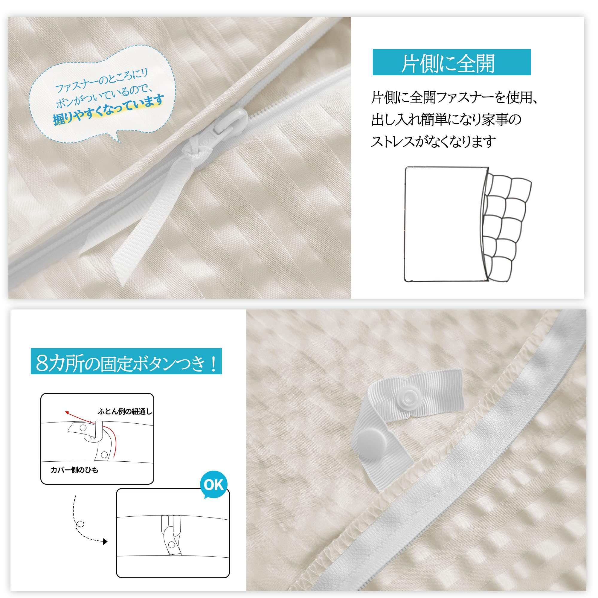 BestOnePlus 掛け布団カバー シングル 羽毛布団カバー 光触媒加工 シアサッカー風 ポコポコ 椿油保湿 静電気防止 柔らかな肌触り 速乾 アレルギー対策 ダニ防止 抗菌 防臭 洗える 全開ファスナー 8箇所スナップボタン 耐久性 色褪せない 洗い替え オールシーズン ストライプ 150X210CM アイボリー