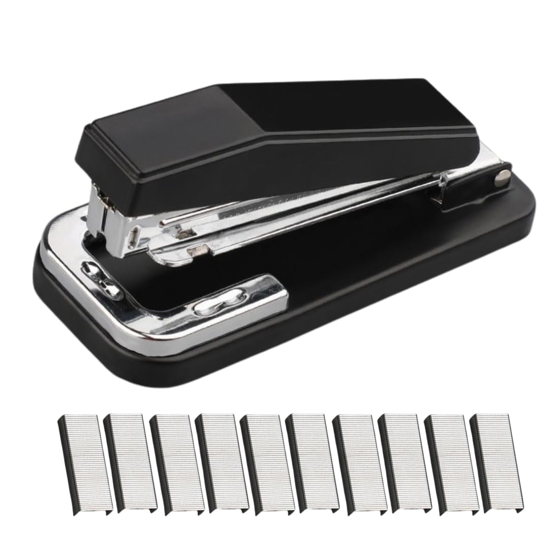 ateena ホッチキス 中綴じ ホチキス ステープラー 製本用 回転式 1000本 芯付き 文具 事務用品 (ブラック)