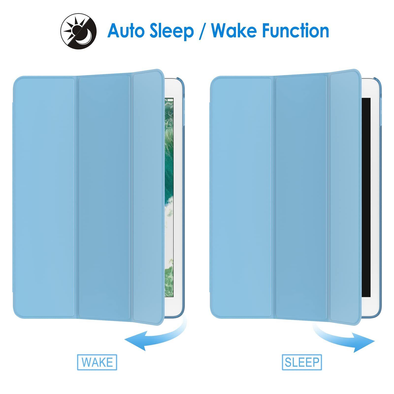 JETech iPad 9.7インチ (2018/2017,第6/5世代用) ケース PUレザー 三つ折スタンド オートスリープ機能 (ブルー)