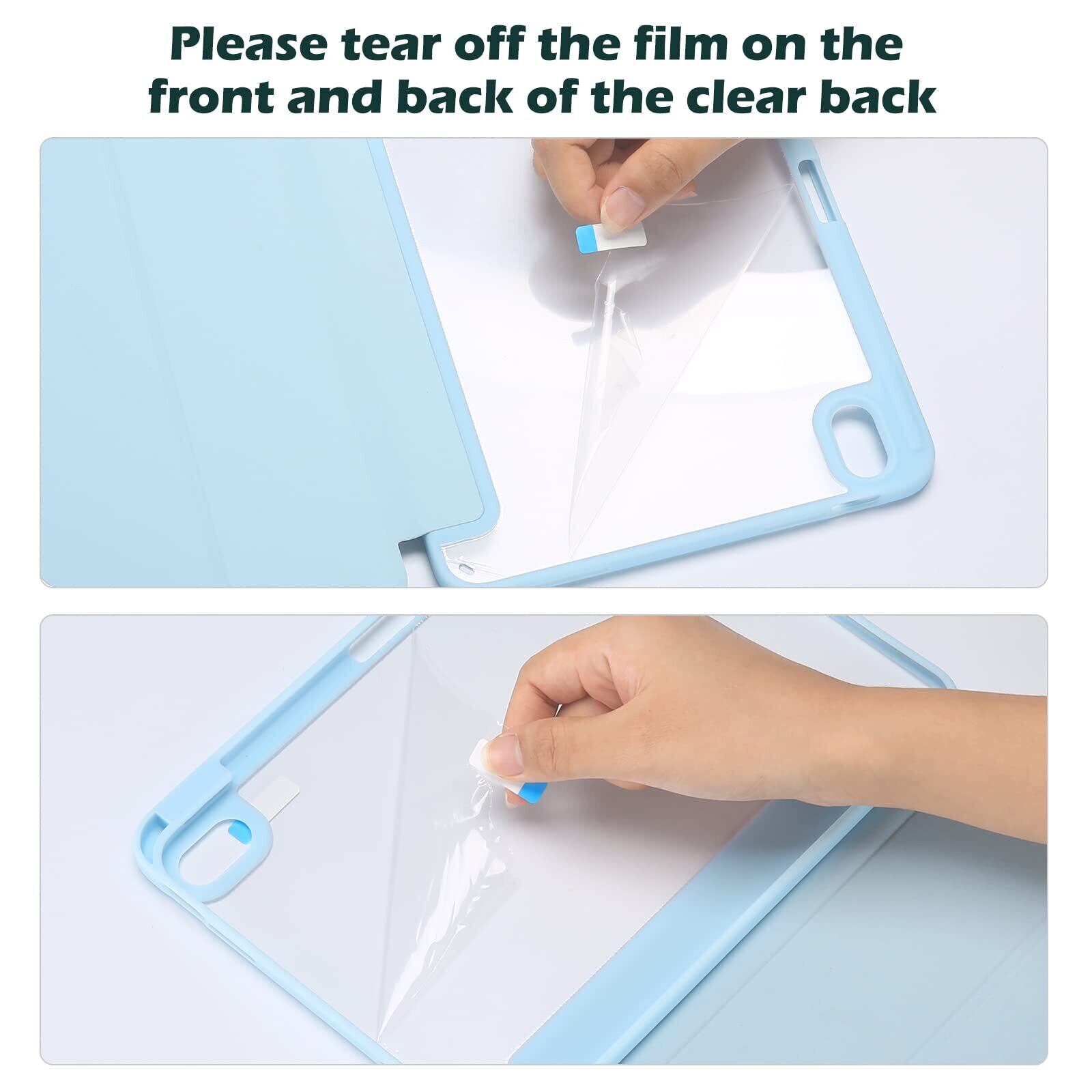 透明でつや消しのPCバックカバーはアイコンを表示し、iPadを衝撃、指紋、引っかき傷から保護します。内蔵したマグネットにより、オートスリープ/ウェイクに対応します。