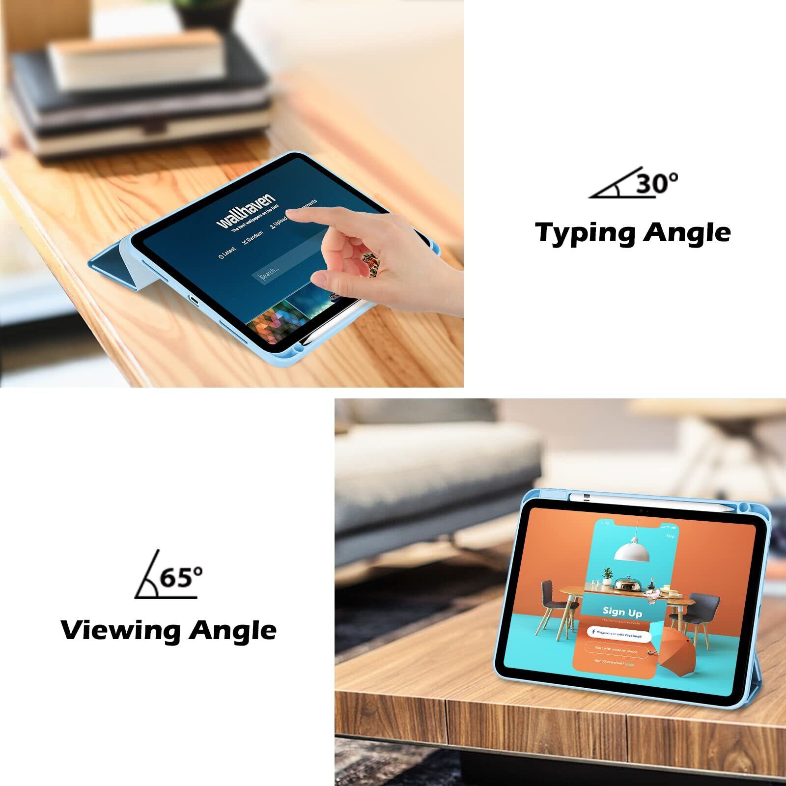 ProCase iPad 11世代/10世代 ケース iPad(A16)11インチ 2025/10.9インチ 2022通用 A2696 A2757 A2777 ペン収納 耐衝撃 三つ折り スタンド スマートカバー(スカイブルー)