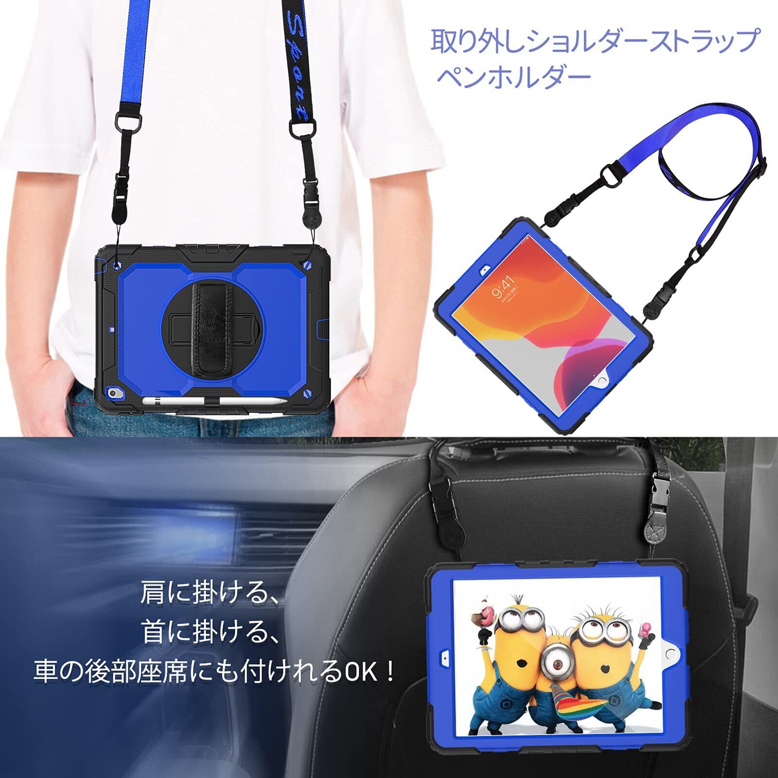 Timecity iPad 10.2 ケース 耐衝撃 iPad 第9世代/第8世代/第7世代 ケース (2021/2020/2019型) 保護フィルム付き 360度回転の折り畳みスタンド ペン収納 肩紐 ハンドストラップ付き 頑丈 落下防止 使い勝手がいい 多機能 iPad 10.2 インチ タブレットPCケース (ダークブルー)