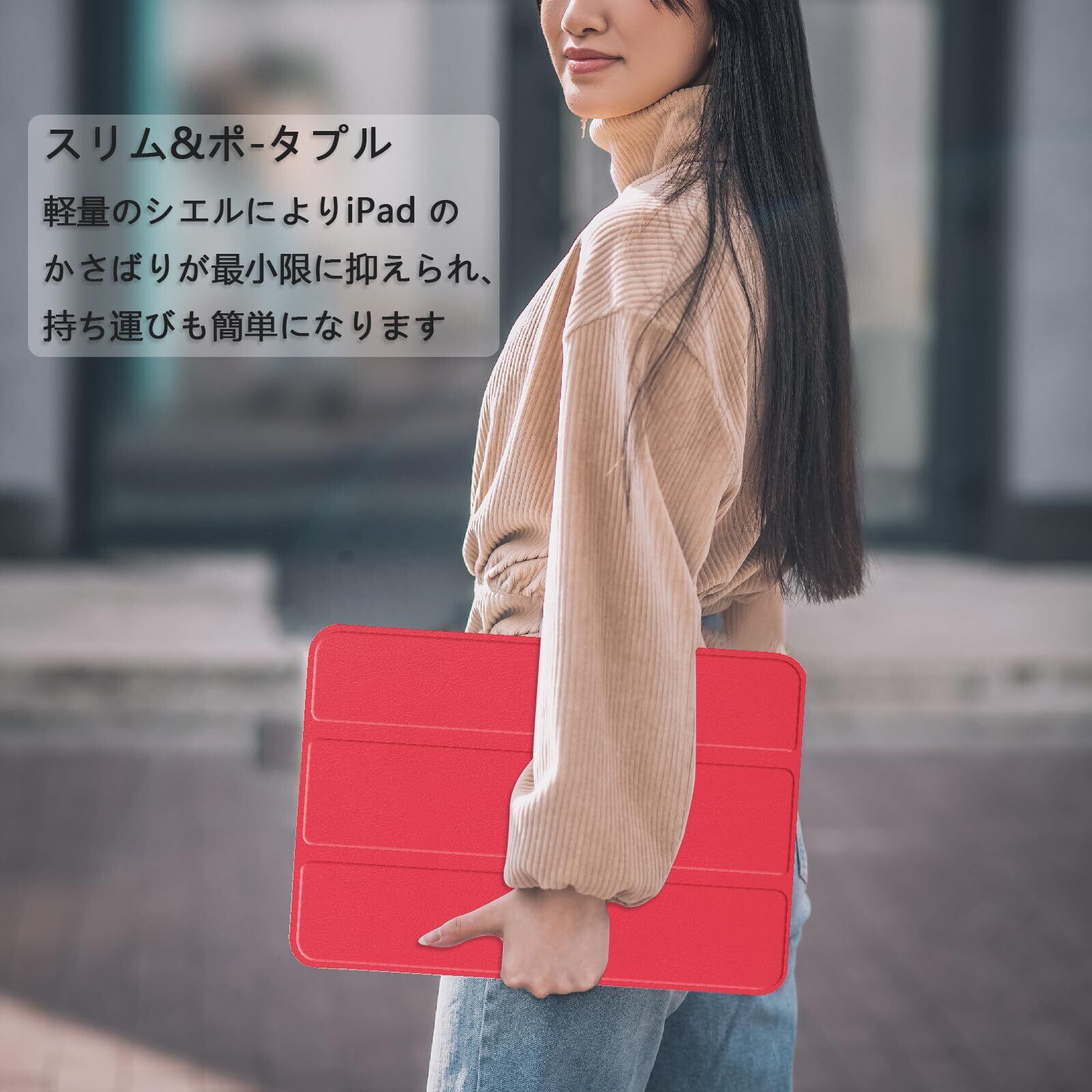 【新着商品】iPad ケース 10.2 第9/8/7世代 (2021/2020/2019年) 通用カバー三つ折り スタンド オートスリープ機能 アイパッド用タブレットケースPU+PC 軽量 傷防止 耐衝撃ipad カバー (レッド iPad 10.2 第9/8/7世代)