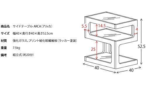 宮武製作所 サイドテーブル ARCA 幅40×奥行き40×高さ52.5cm ブラウン 3段ガラス天板 ST-403 BR