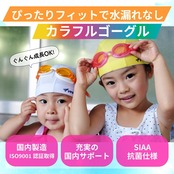 【傷がつきにくいから初めてのスイミングにもおすすめ】 ゴーグルのレンズ部分にレンズガードを着けているので、地面に落としてしまってもレンズ面は地面に当たらず、傷付きを防止します!小学校での水泳(プール)の授業はもちろん、園児さんのスイミングスクールでの使用にもおすすめ。水中メガネが欲しい海水浴の際も、岩場や砂浜に落としても傷がつきにくいので安心して使えます。直接肌に触れるフェイスパッドには無機抗菌剤を練りこみ、雑菌の繁殖を制御。SIAAマーク適合の安心・清潔仕様のゴーグルです。さらに!ネーム欄がついているのでスイミングスクールや学校でも自分のゴーグルがどれかわからなくなってしまう心配もありません!
