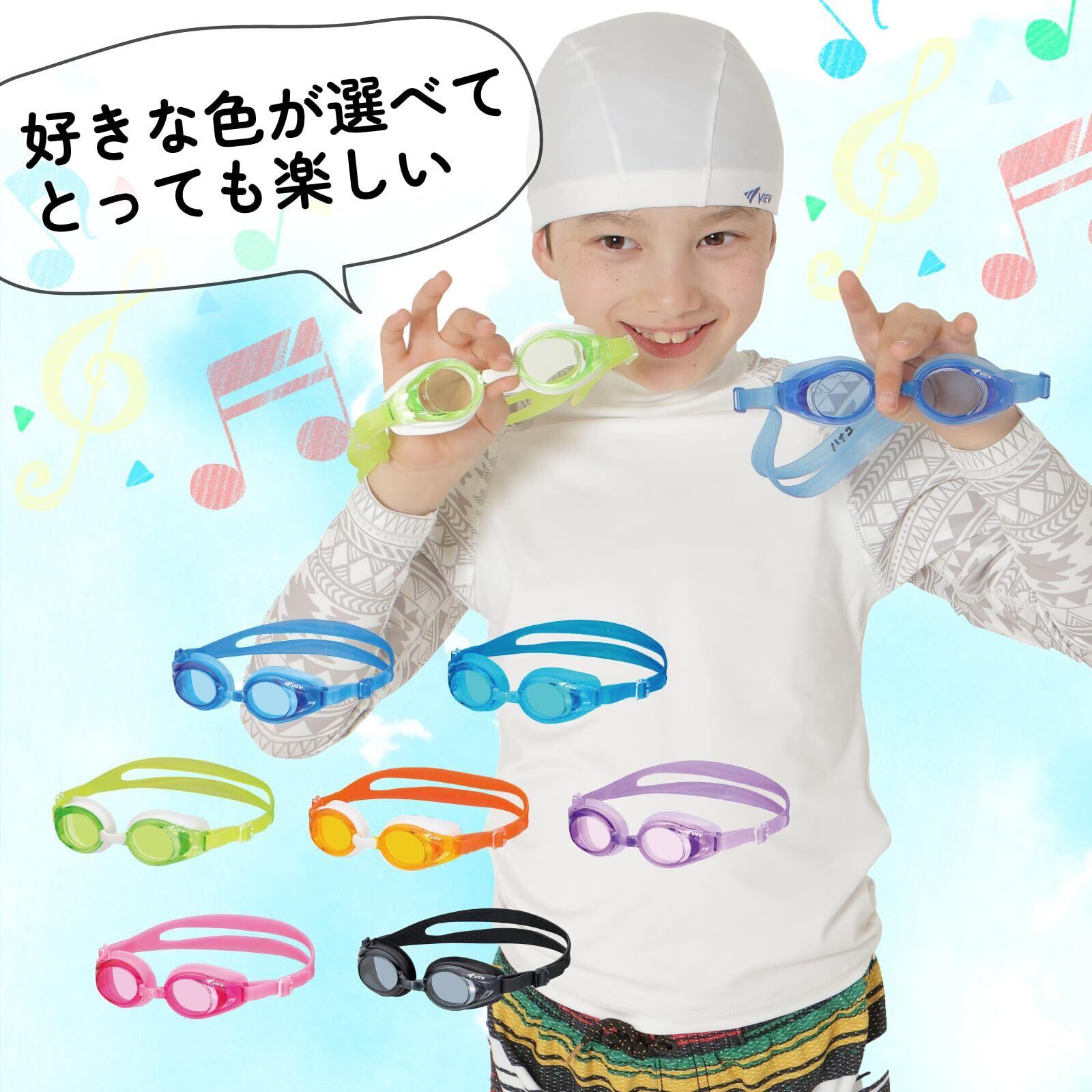 【在庫セール】VIEW(ビュー) 日本製 はじめてのスイミングにも 子ども用スイミングゴーグル 4~9歳用設計だから水がはいりにくい 抗菌機能付 V710J AM