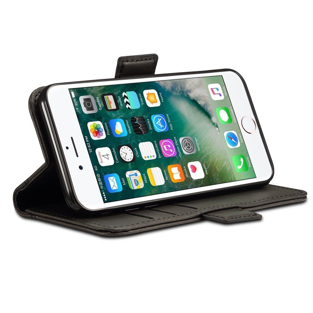 手帳型ケース 外部のカバーは合皮レザー素材を採用しており、放熱性や耐衝撃が良く、傷や埃を防ぐことができるiPhone7カバーです。インナーケースは弾力性のあるソフト素材を採用しており、角までしっかり保護できるiPhone8ケースです。