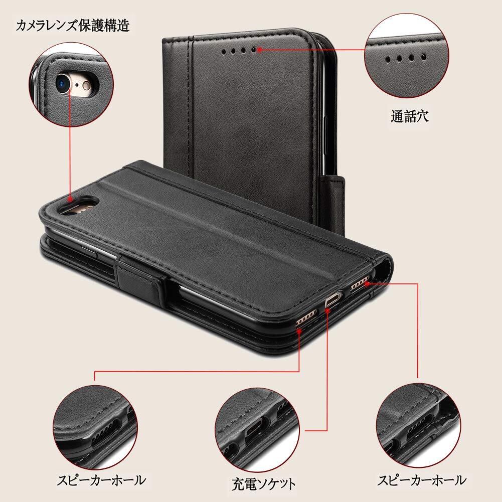 iPhone SE ケース 第2世代 第3世代 iPhone8 ケース 手帳型 Rssviss iPhone7 手帳カバー iPhone se2 手帳型ケース マグネット W3 iPhone se3 、iPhone se2、iPhone8、iPhone7対応 4.7inch ブラック
