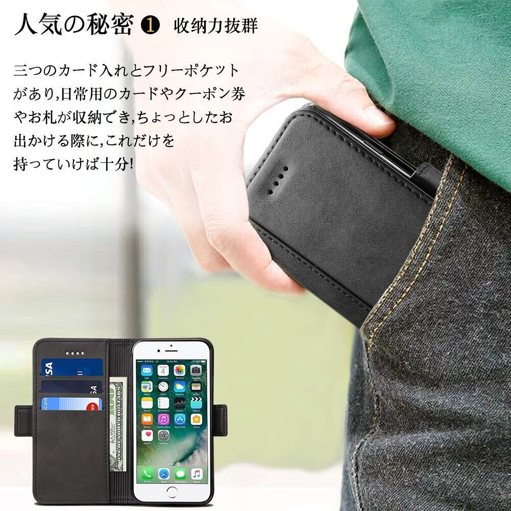 機能性 横置きスタンド機能が付いて、好きな角度で動画鑑賞や読書などを楽しめます。ブック型ケースとして、内側には三つのカード入れとフリーポケットがつき、名刺や定期券の収納に優れているiPhone se 第3世代 手帳型ケースです。
