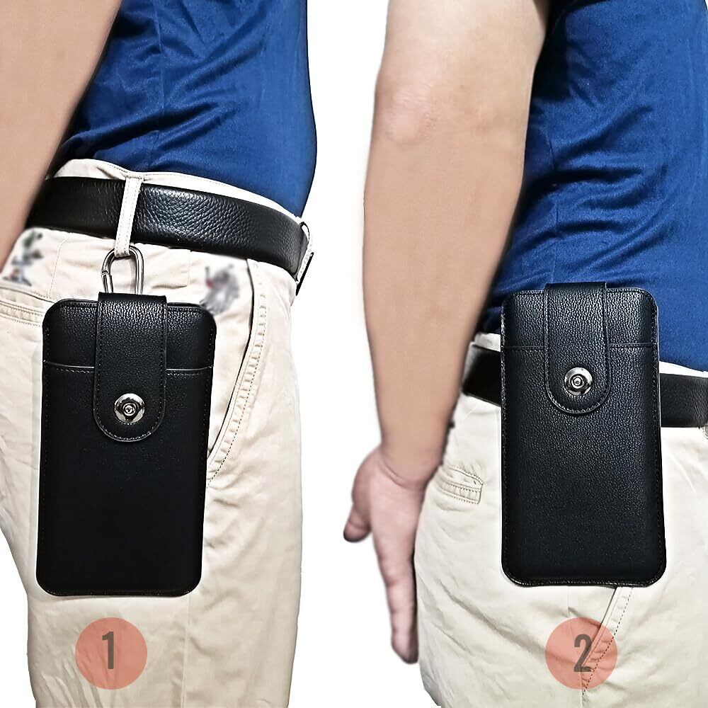 携帯ポーチ ベルト 縦, カラビナが付属しています, 多様な使い方をする. ベルト通し,またはカラビナを使用して腰に掛けたり、バッグに掛けたりします.薄型軽量スマホ収納袋.