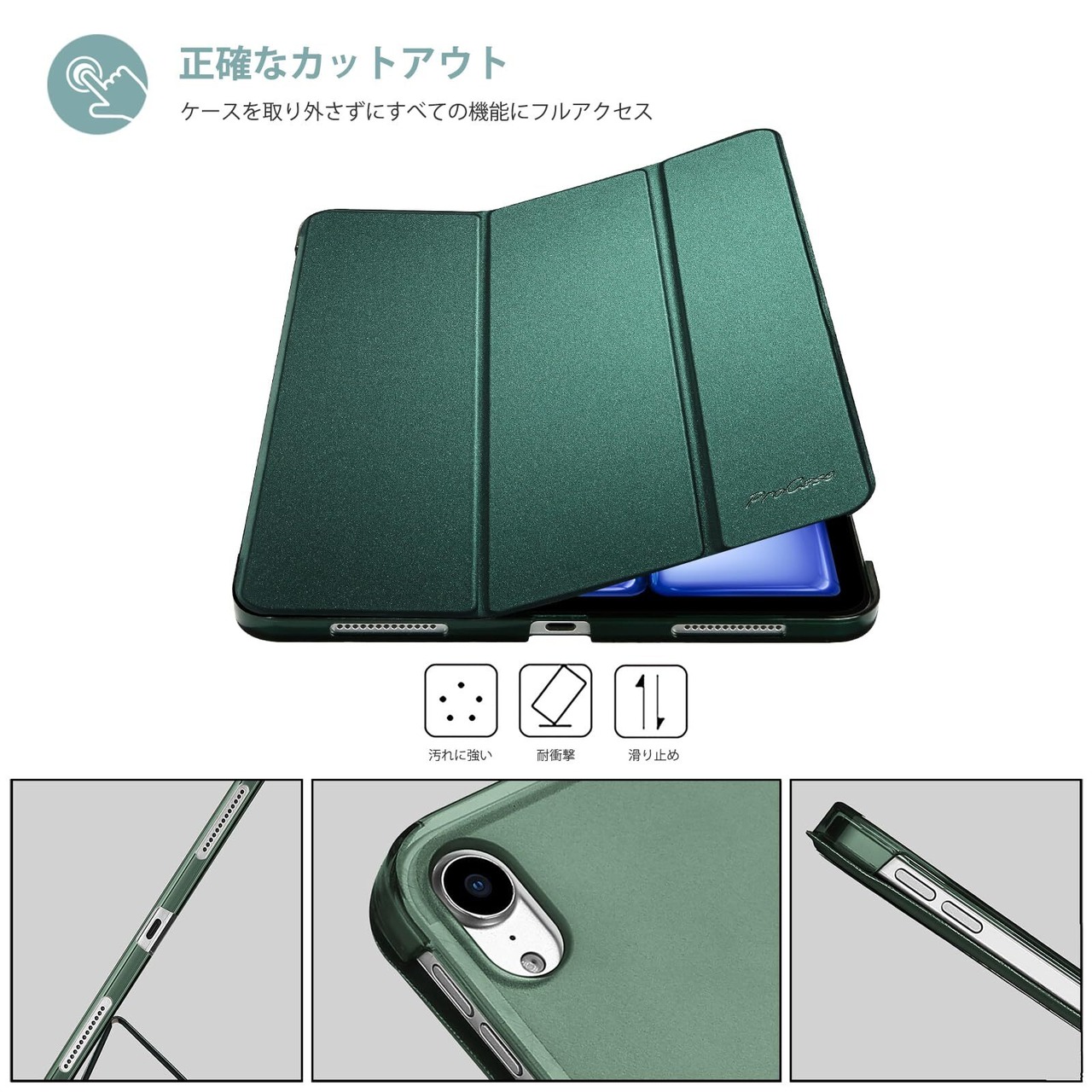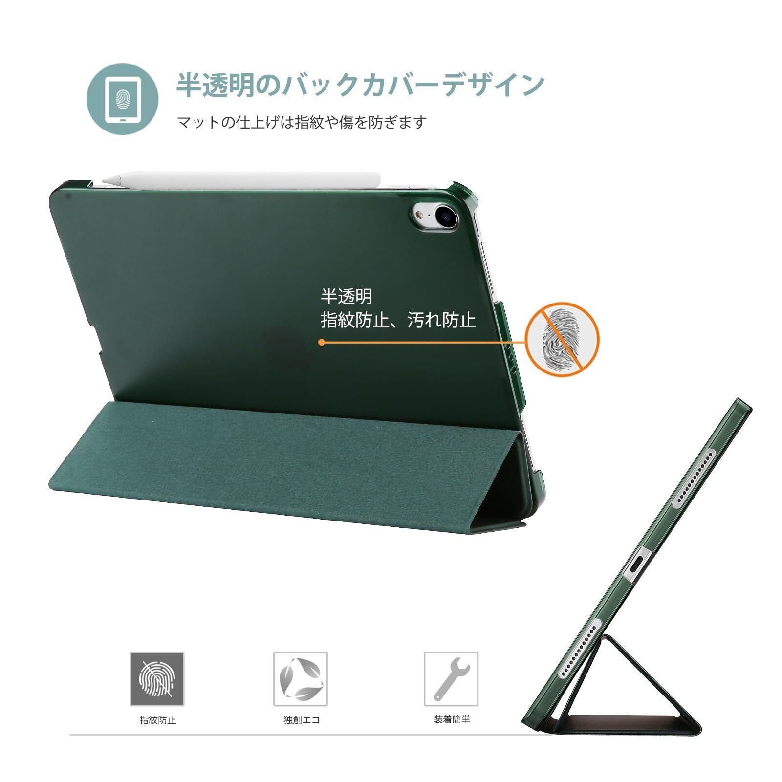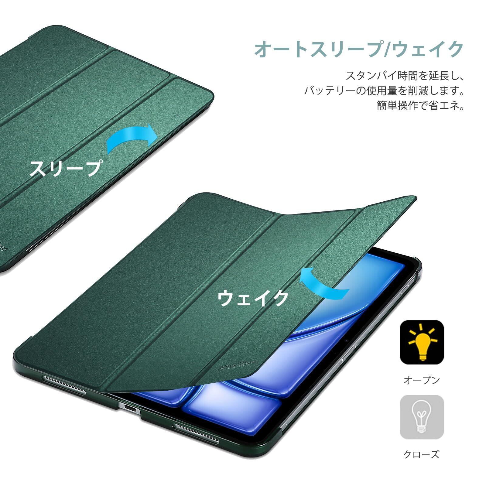【在庫処分】ProCase iPad Air 11インチ ケース M3 (2025) / M2 (2024) / iPad Air 第5世代 / 第4世代 軽量 スタンド 三つ折り フォリオ保護ケース 半透明バックカバー Apple Pencil 2対応 対応端末:iPad air 11インチ M3 (2025)、M2 (2024)、iPad Air5 2022、Air4 2020 - ミッドナイトグリーン