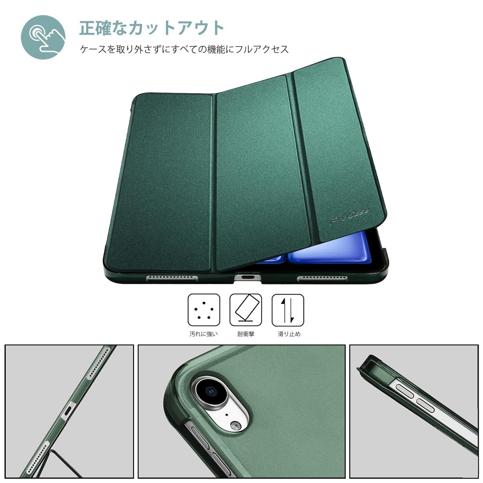 ProCase iPad Air 11インチ ケース M3 (2025) / M2 (2024) / iPad Air 第5世代 / 第4世代 軽量 スタンド 三つ折り フォリオ保護ケース 半透明バックカバー Apple Pencil 2対応 対応端末:iPad air 11インチ M3 (2025)、M2 (2024)、iPad Air5 2022、Air4 2020 - ミッドナイトグリーン