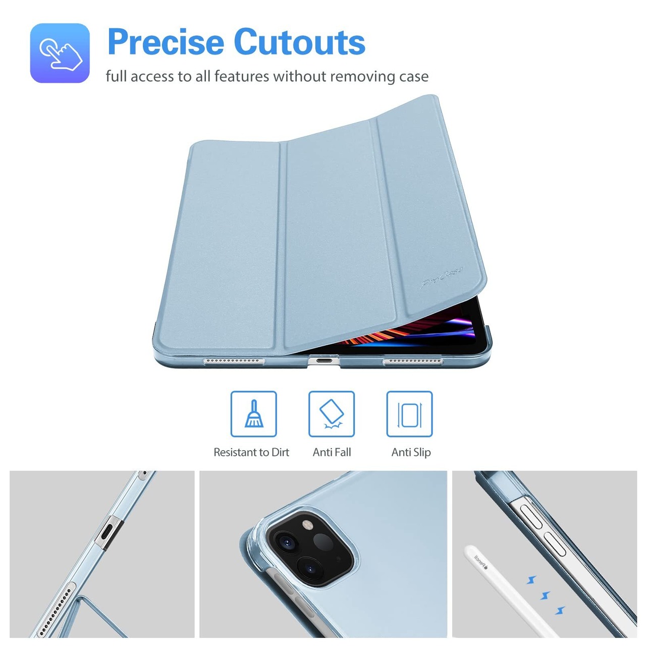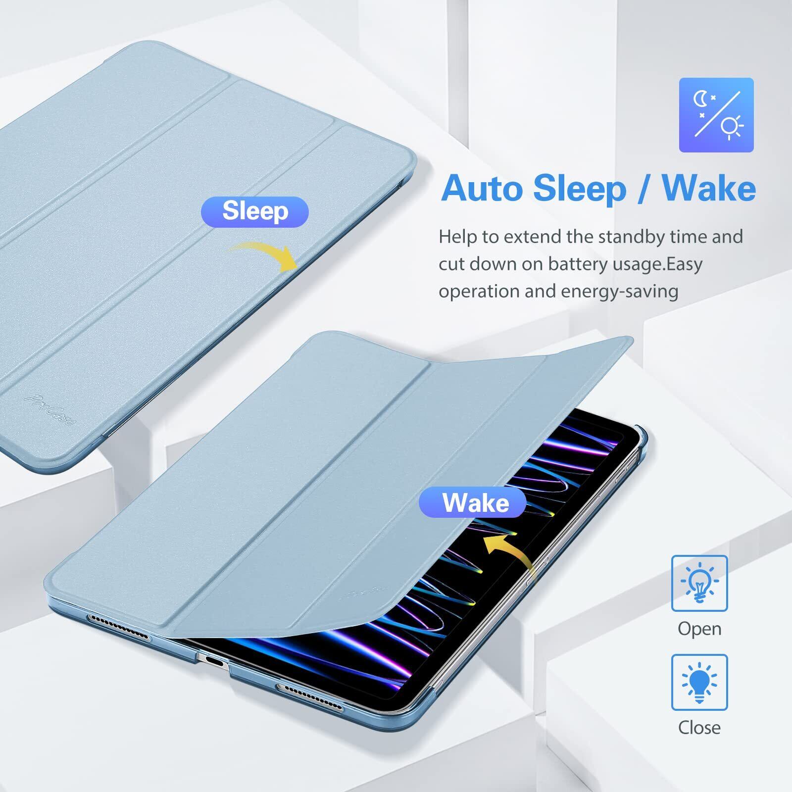 ProCase iPad Pro 11 ケース 第4/3/2/1世代に適用(2022 2021 2020 2018)、[Apple Pencilのペアリングと充電に対応] 三つ折り スタンド スマートカバー - スカイブルー