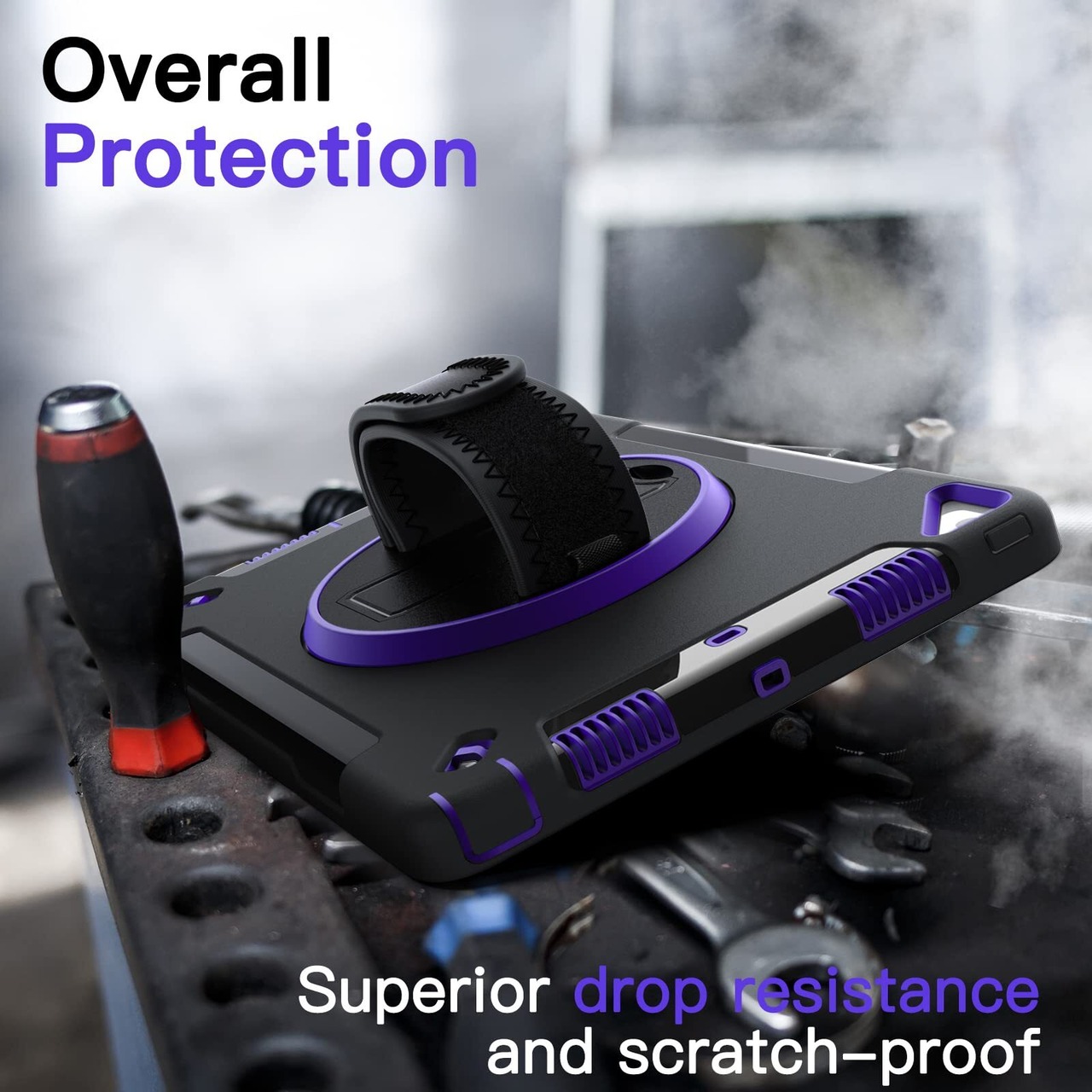 【在庫セール】JETech iPad 10.2インチ ケース (第9/8/7世代、2021/2020/2019モデル) 液晶保護フィルム付き 保護耐衝撃頑丈なタブレットカバー 360°回転ハンドストラップスタンド (パープル)