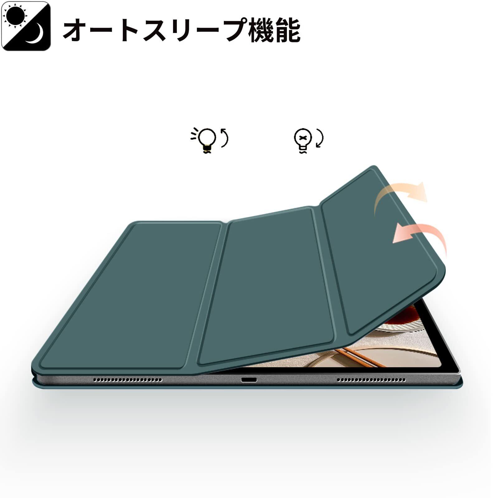 KenKe 新型 iPad Pro 11 ケース 第4/3/2/1世代 通用 磁気吸着 軽量 柔らかいシリコン 高級PU材質 カバー Pencil 2 ワイヤレス充電可能 三つ折り畳み可 スタンド マグネット付き 自動スリープ機能 iPad Pro 11インチ 2022/2021/2020/2018 (ダークグリーン)